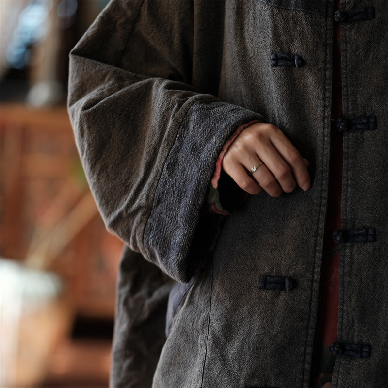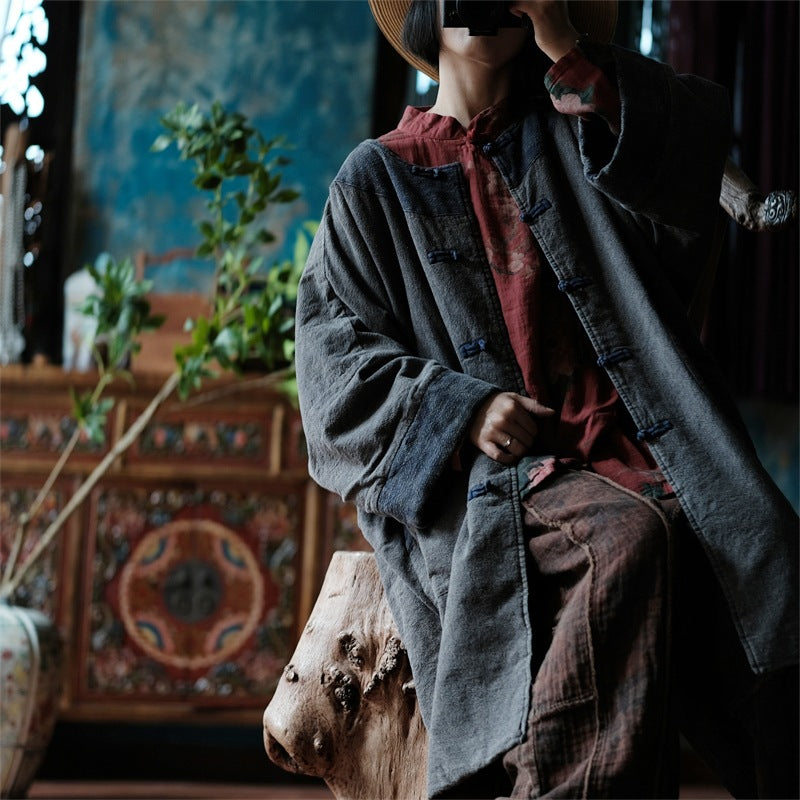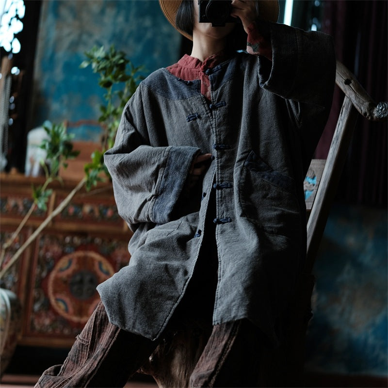- Artículo: Babakud - Bata holgada de lino estilo retro de otoño para mujer