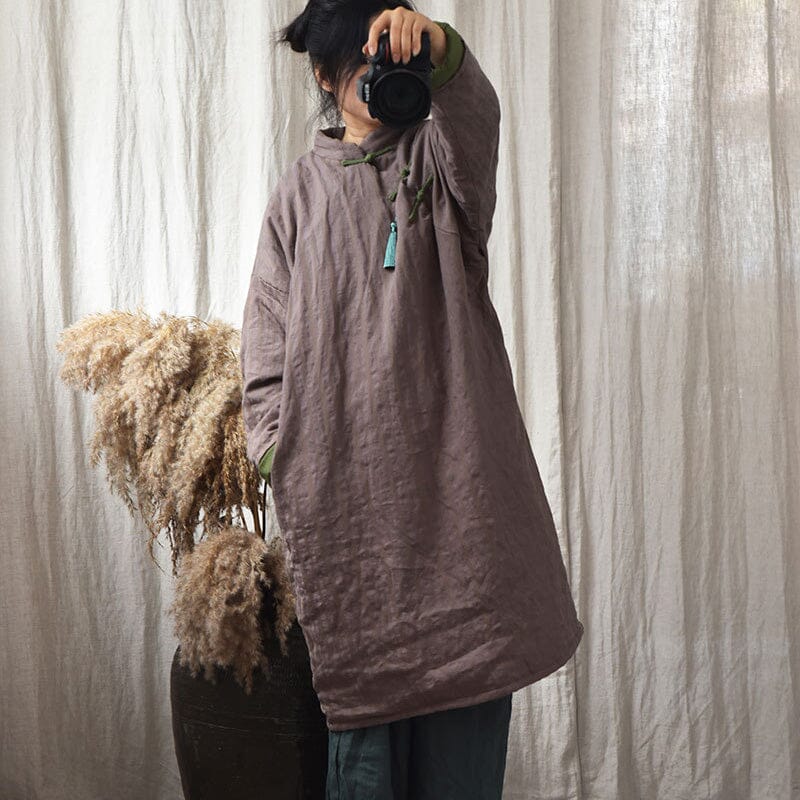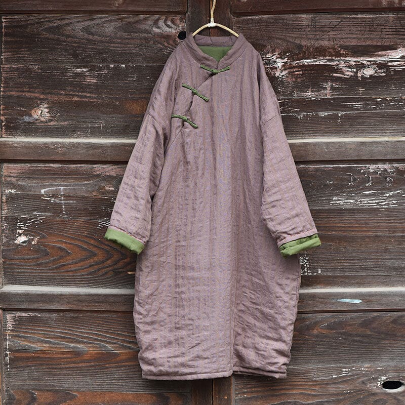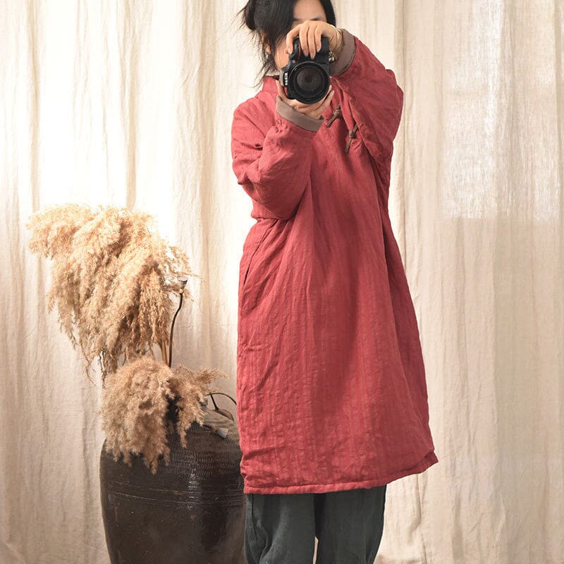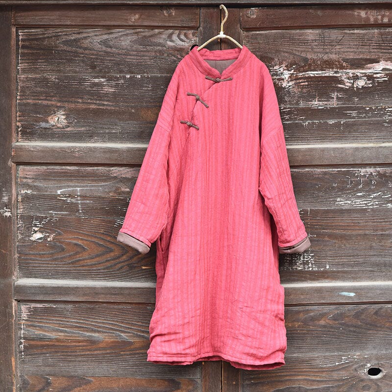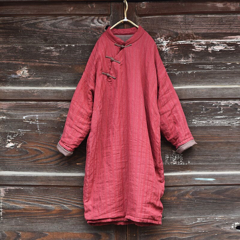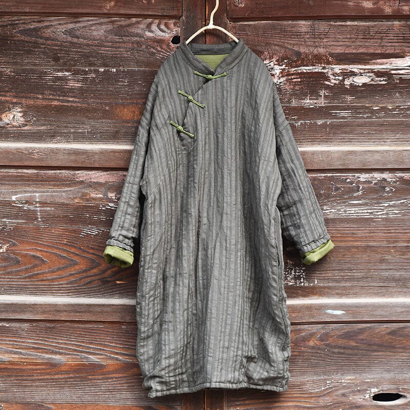 Women Winter Retro Stripe Linen Quilted Overcoat