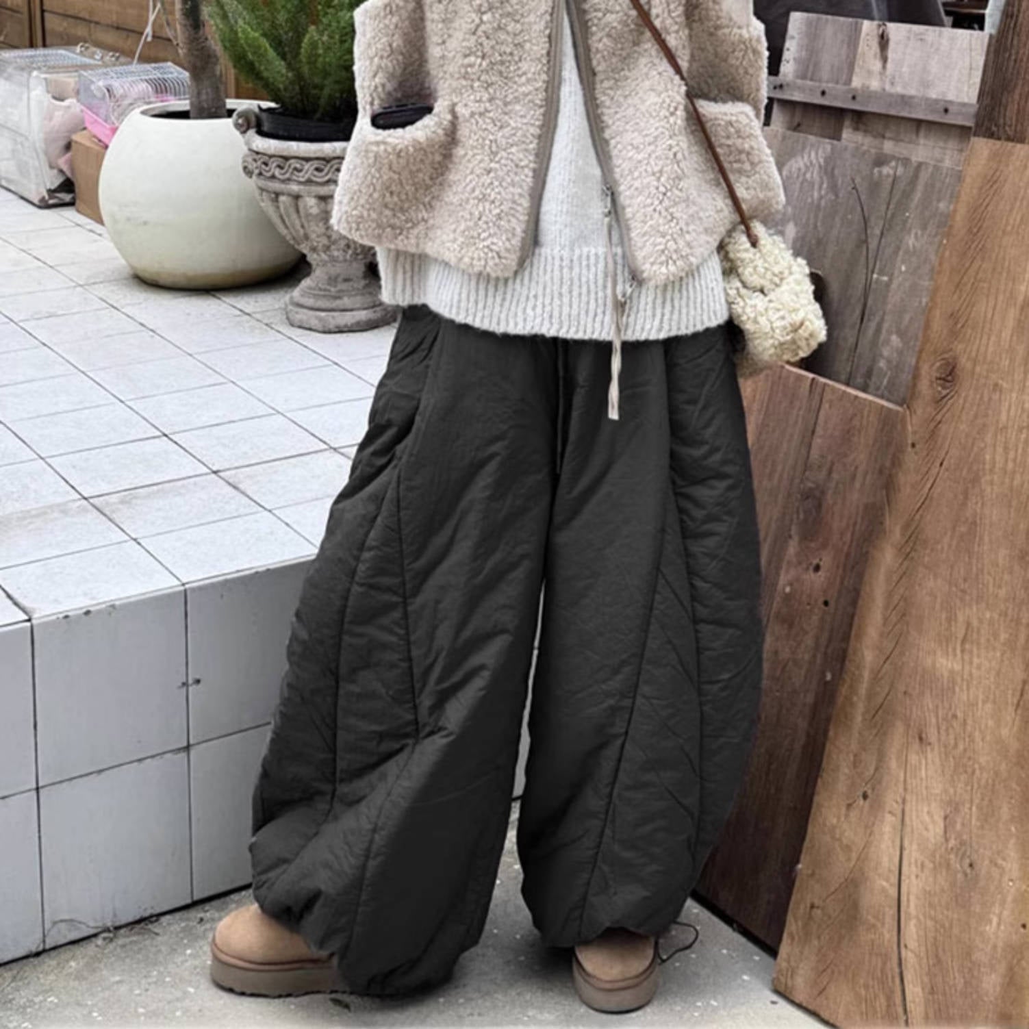 Pantalones anchos de algodón negros de invierno, holgados y cálidos