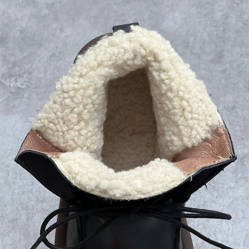 Retro Genuine Leather Flat Sole Lace-Up Ankle Boots