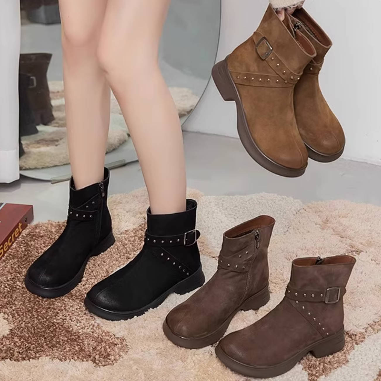 - Tipo de artículo: Botines de moda retro de cuero con gamuza y tiras cruzadas