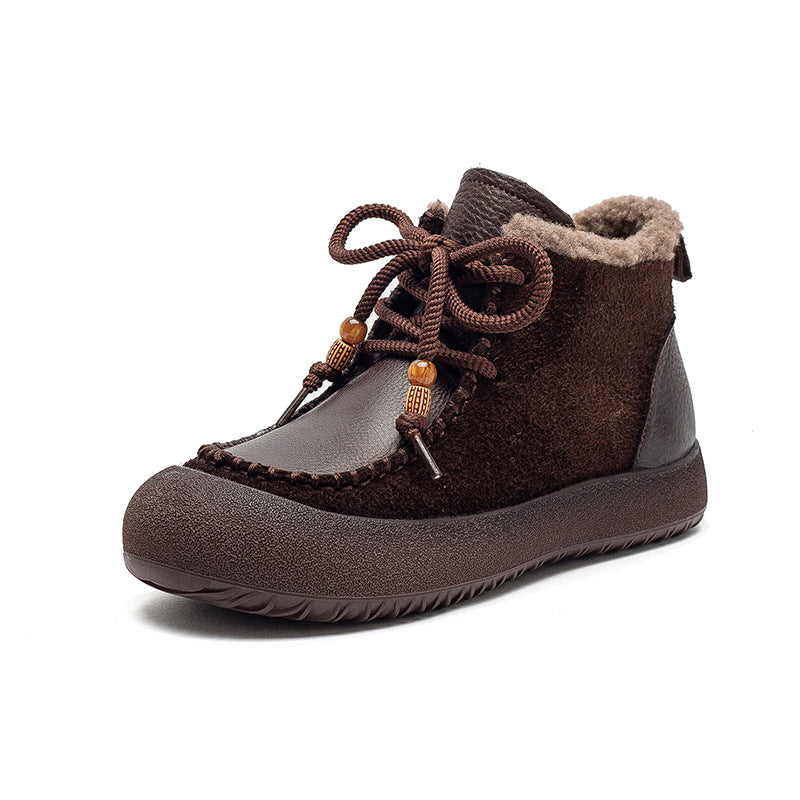 Botines de invierno cálidos de estilo retro con patchwork de ante y cordones