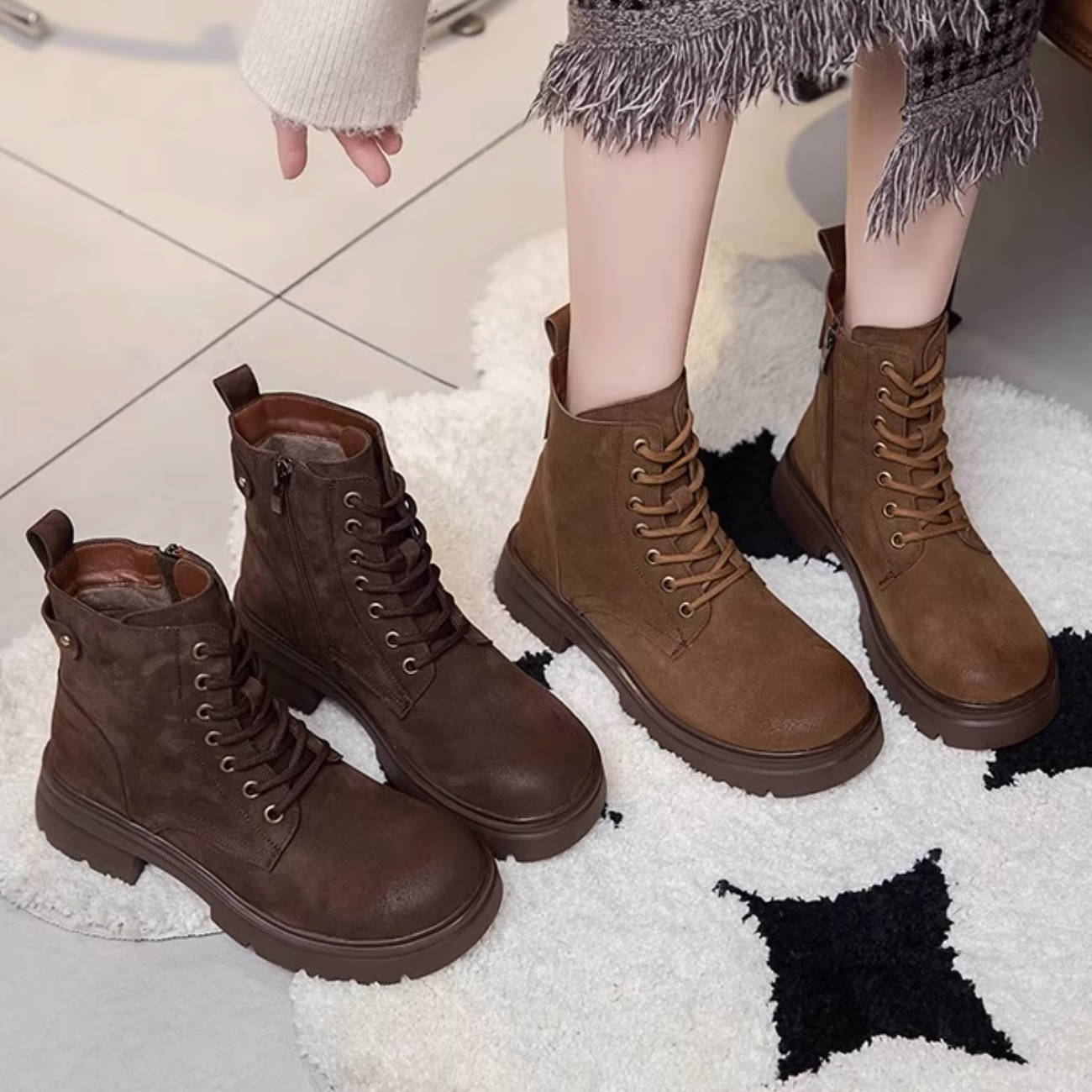 - Tipo de artículo: Botines de felpa gruesos, versátiles, de cuero retro y modernos para mujer