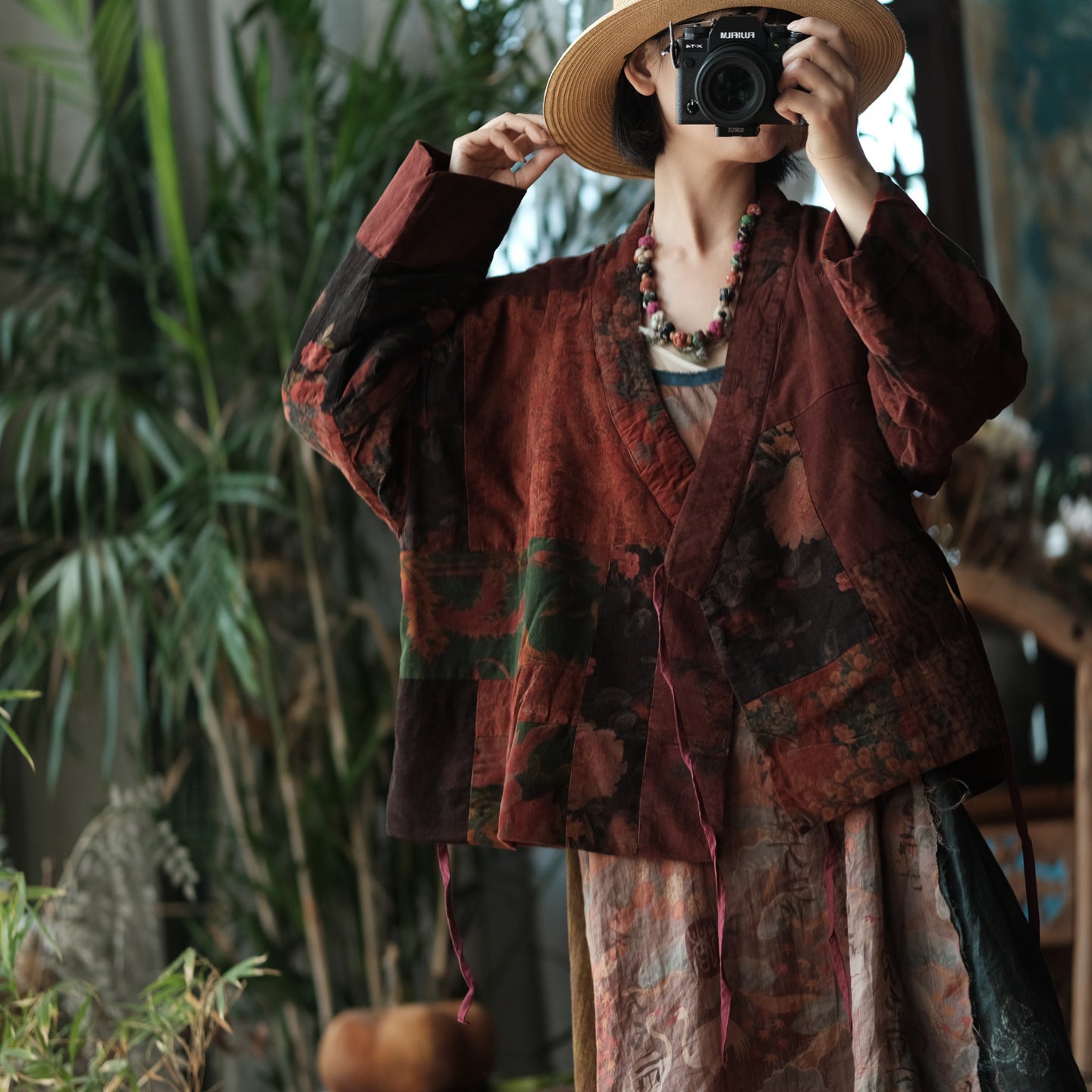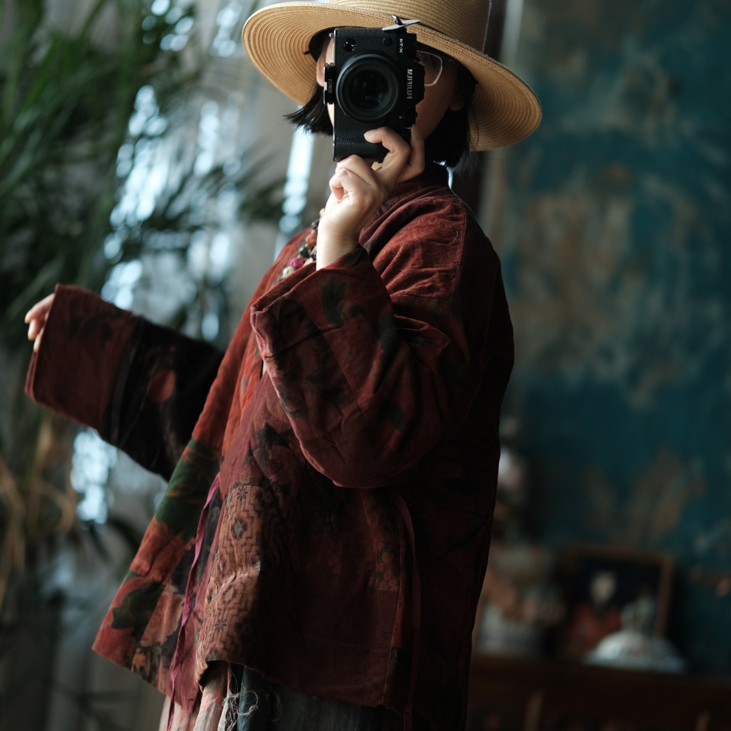 Retro Cotton V-Neck Lace-Up Thick Long Sleeves Coat