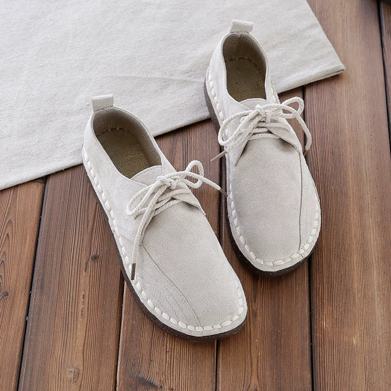 Zapatos casuales de gamuza suave, con suela plana y cordones versátiles para mujer
