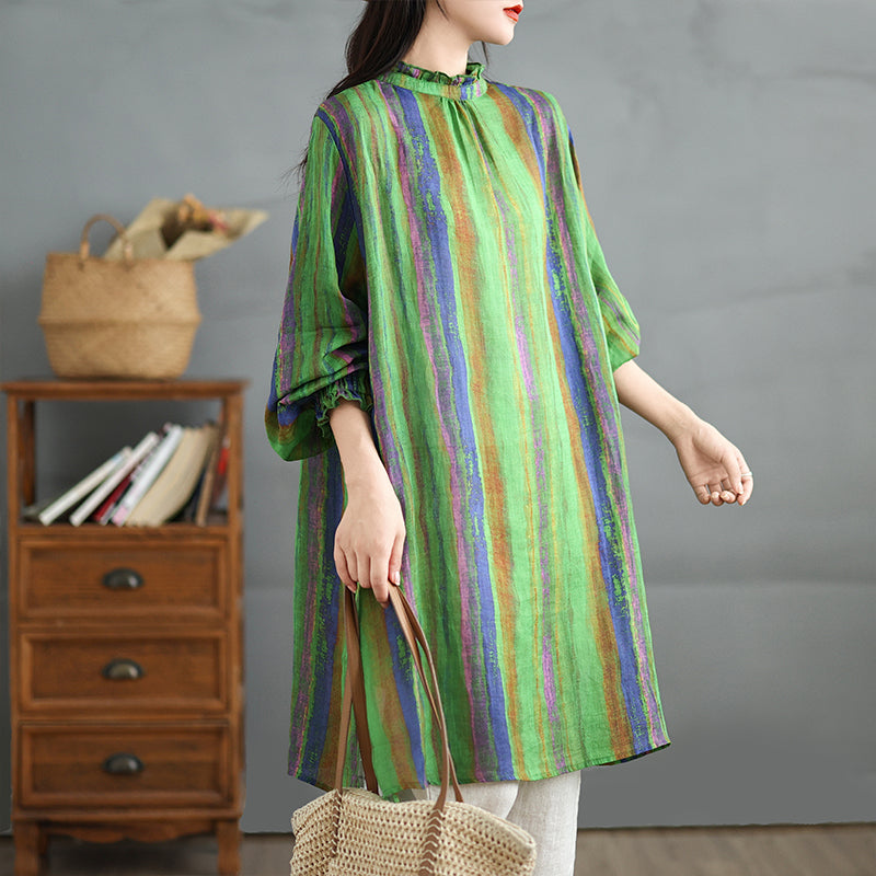 - Artículo: Camisa larga de lino a rayas vintage de primavera para mujer de Babakud