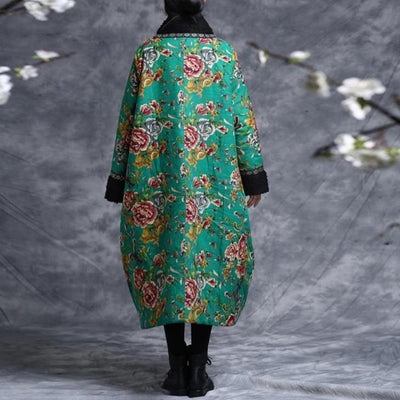 Abrigo largo de algodón con flores étnicas de invierno para mujer de Babakud