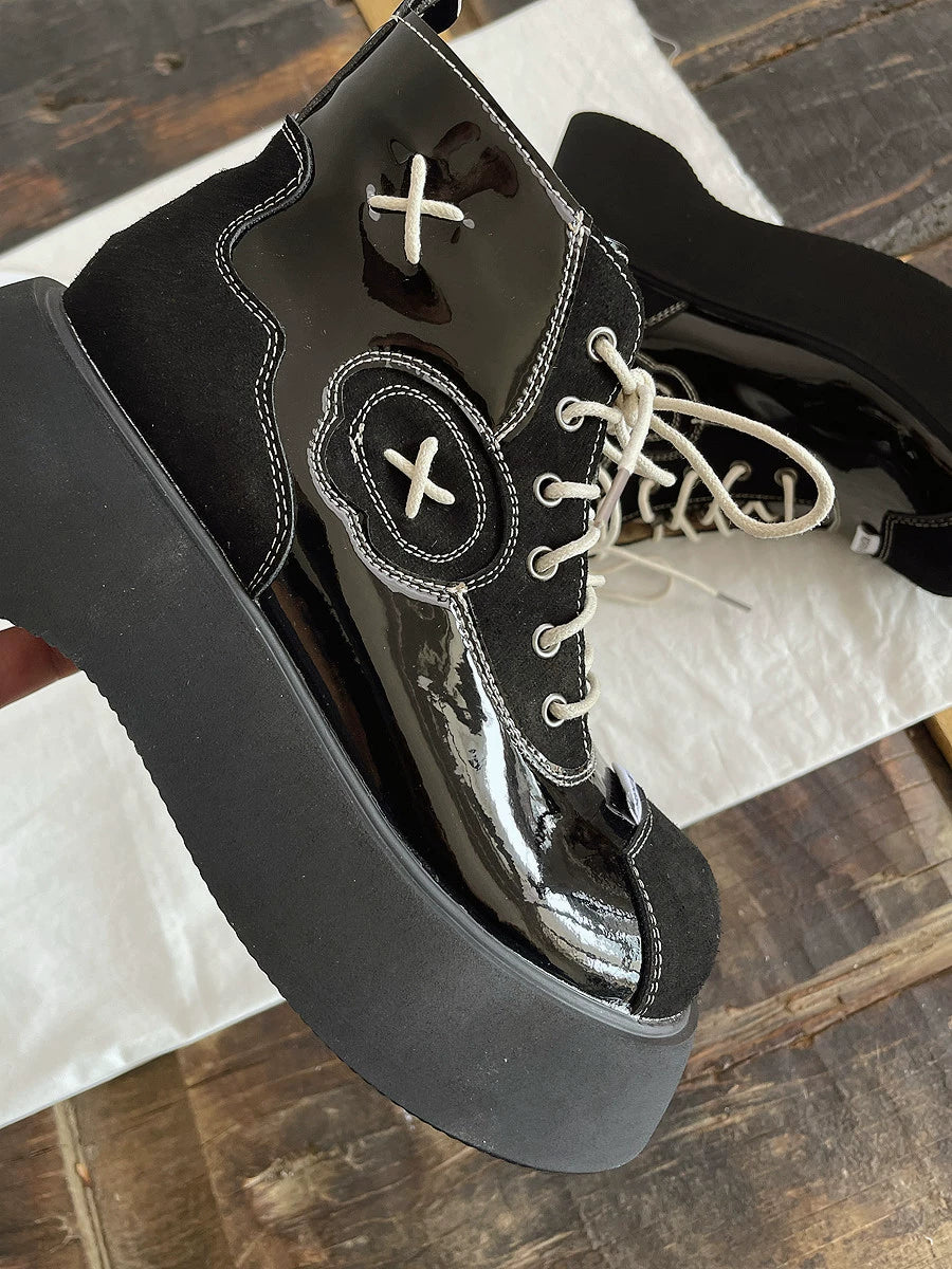 Botas de otoño para mujer con plataforma de PU y suela suave con cordones