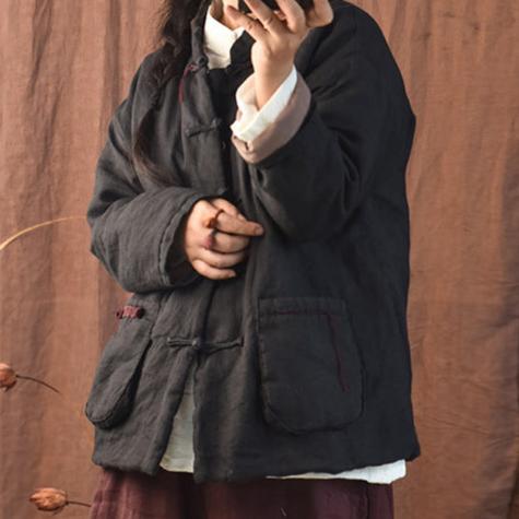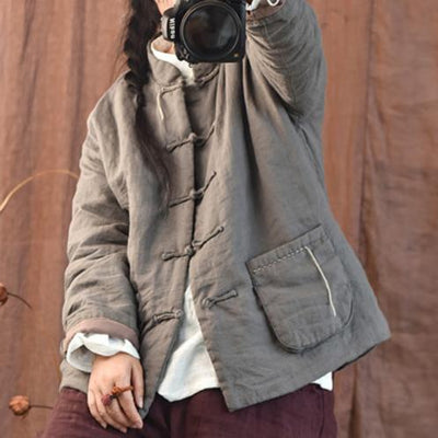 Chaqueta acolchada de algodón de lino retro de otoño para mujer