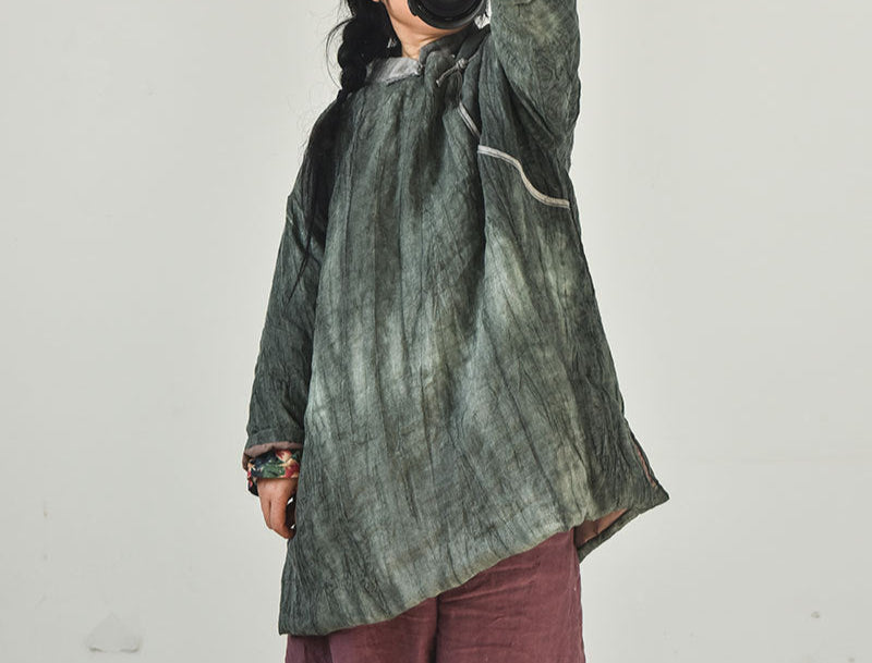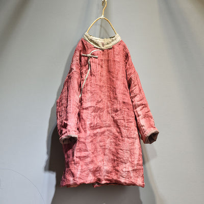 Women Retro Warm Mid- Length Padded Linen Coat