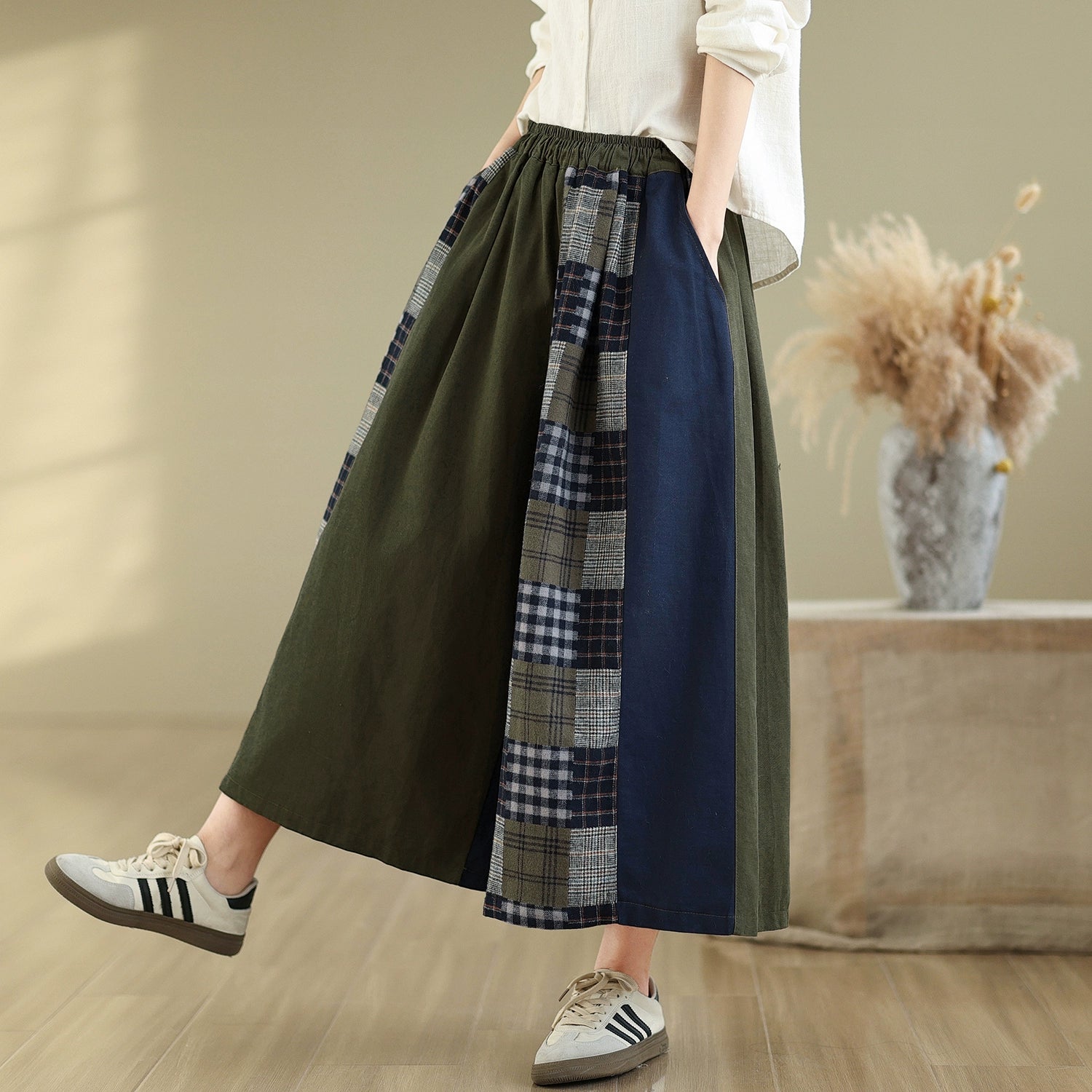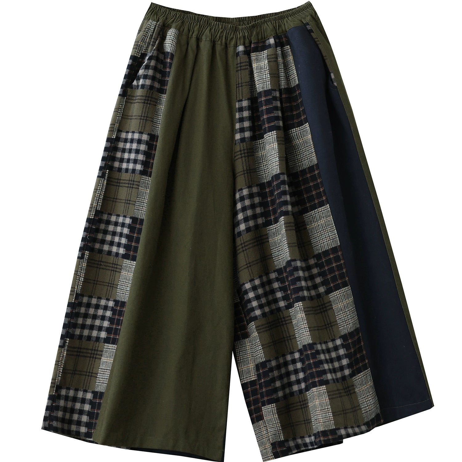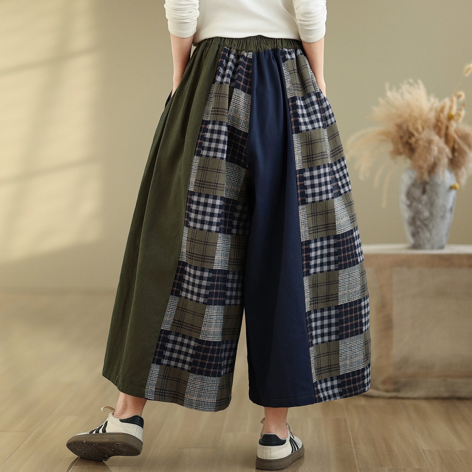 - Artículo: Pantalones anchos de algodón con estampado artístico vintage de primavera para mujer.