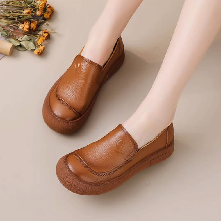 Top Leather Retro Soft Sole Everyday Comfy Flat Slip-On Shoes