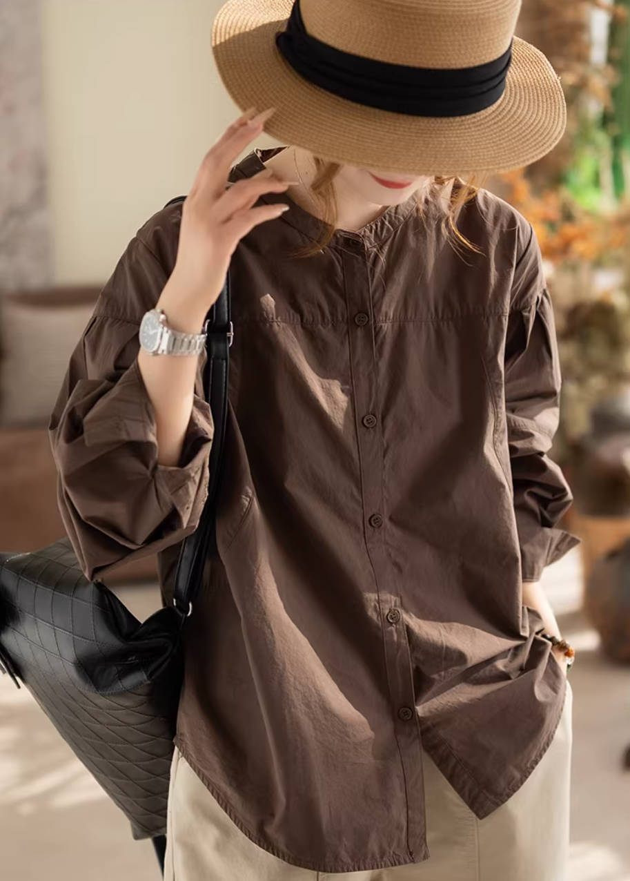 - Article : Chemises décontractées unies en coton, col rond, fines, douces et amples, style rétro.