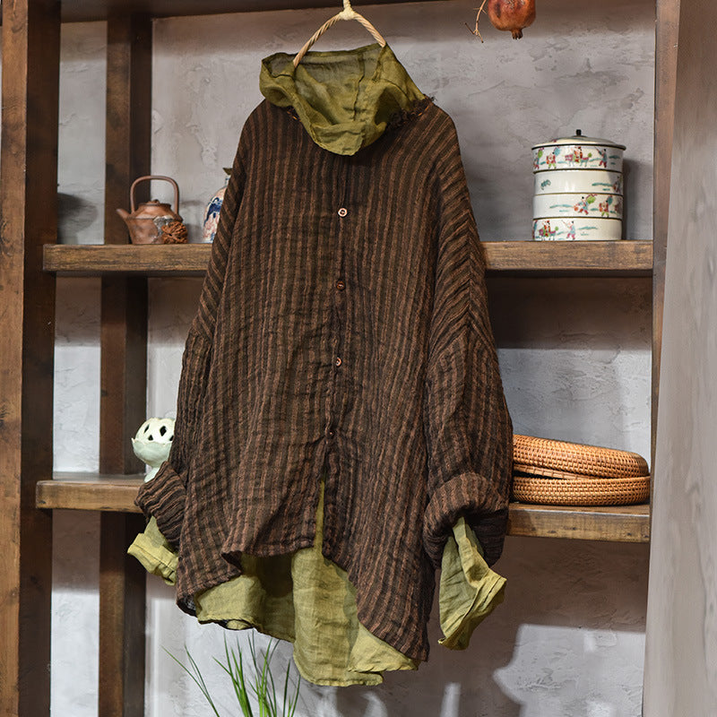 - Article : Chemise ample décontractée à col rond en lin délavé rétro pour femme