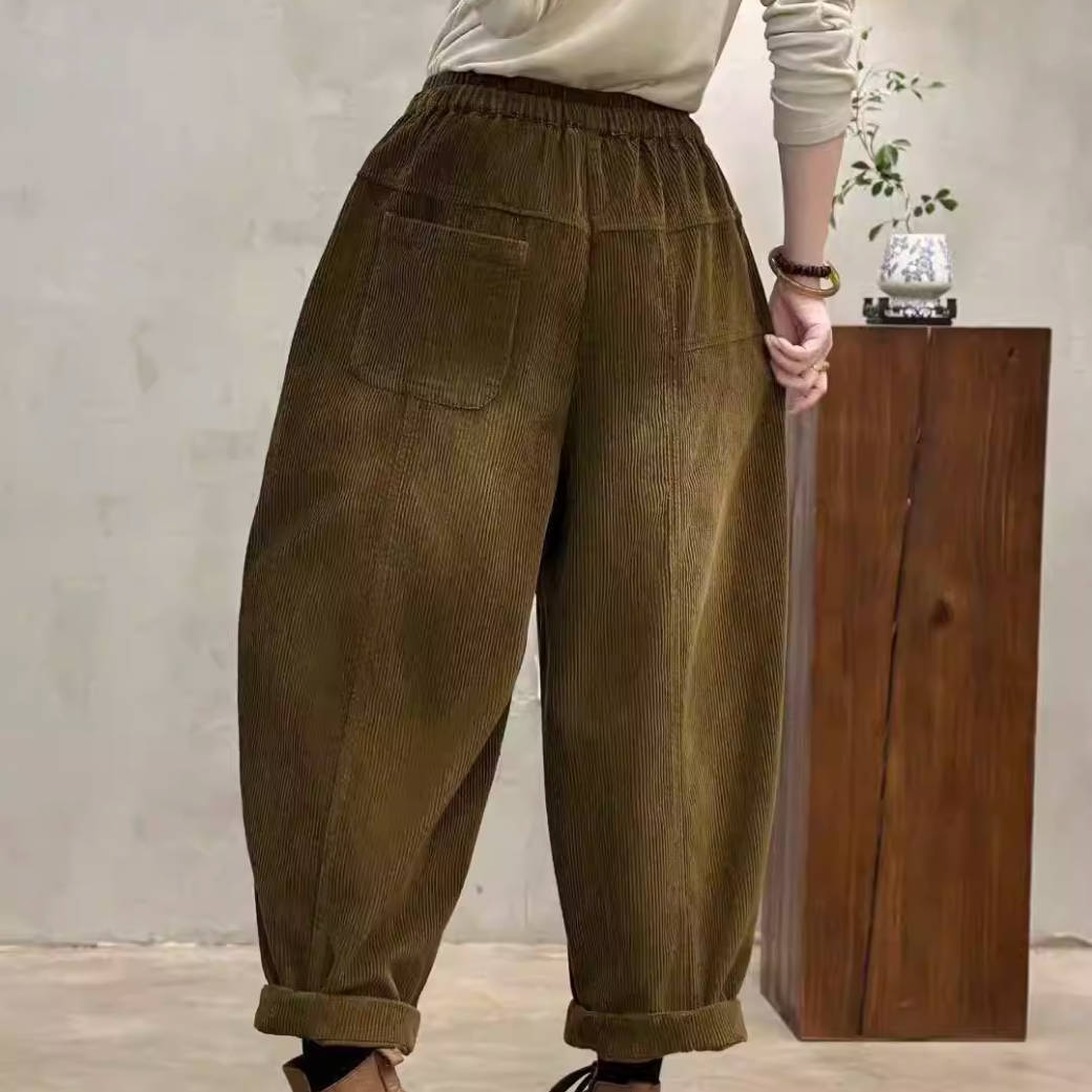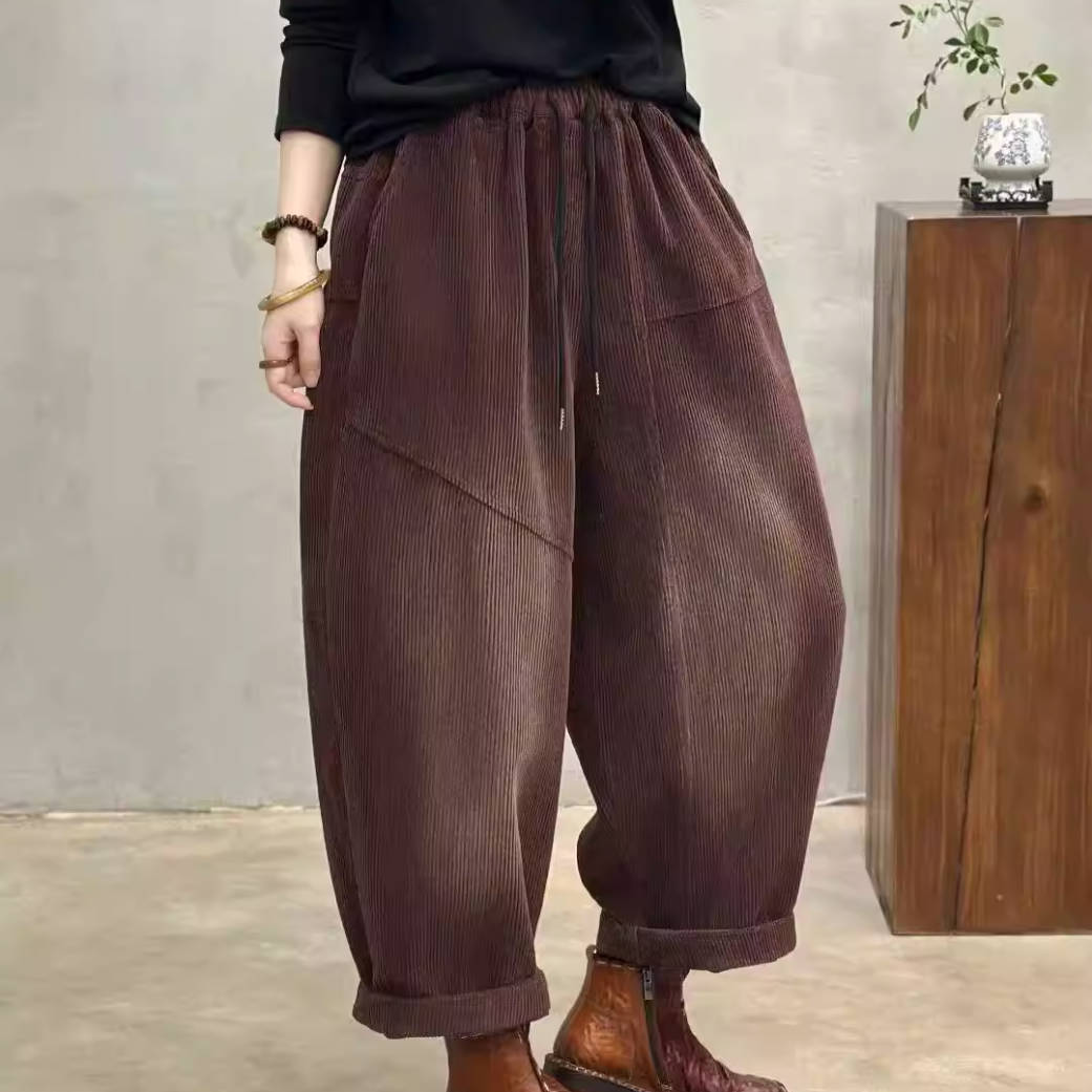 - Article : Pantalon harem en velours côtelé de coton épais et ample à taille élastique pour femme