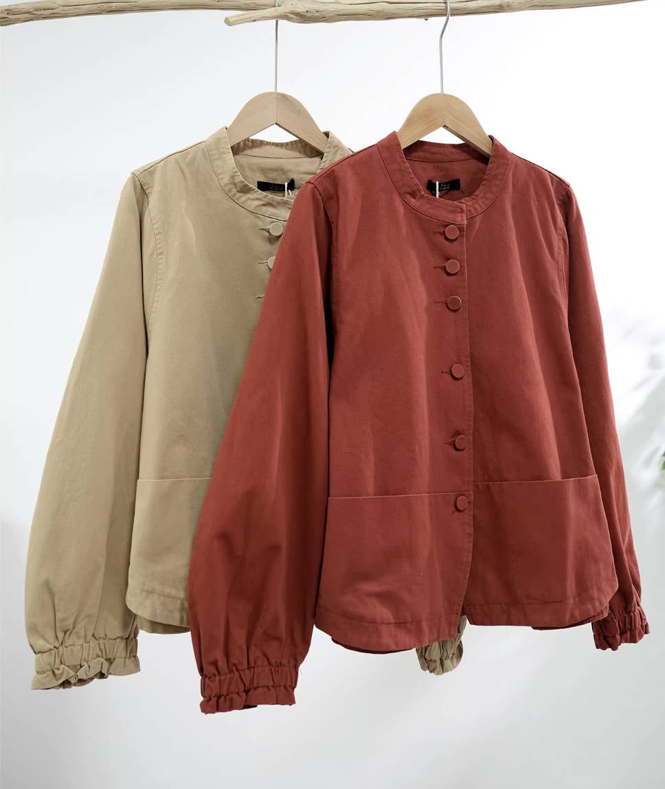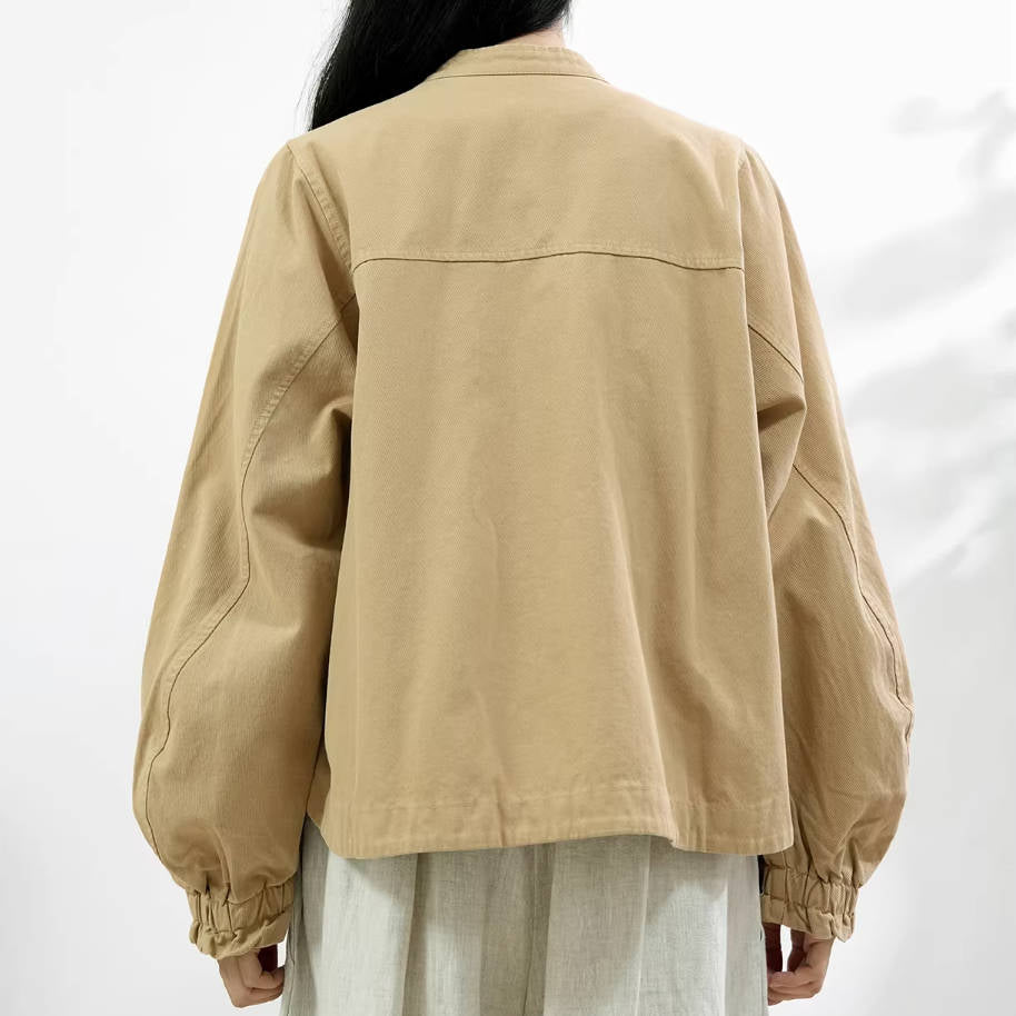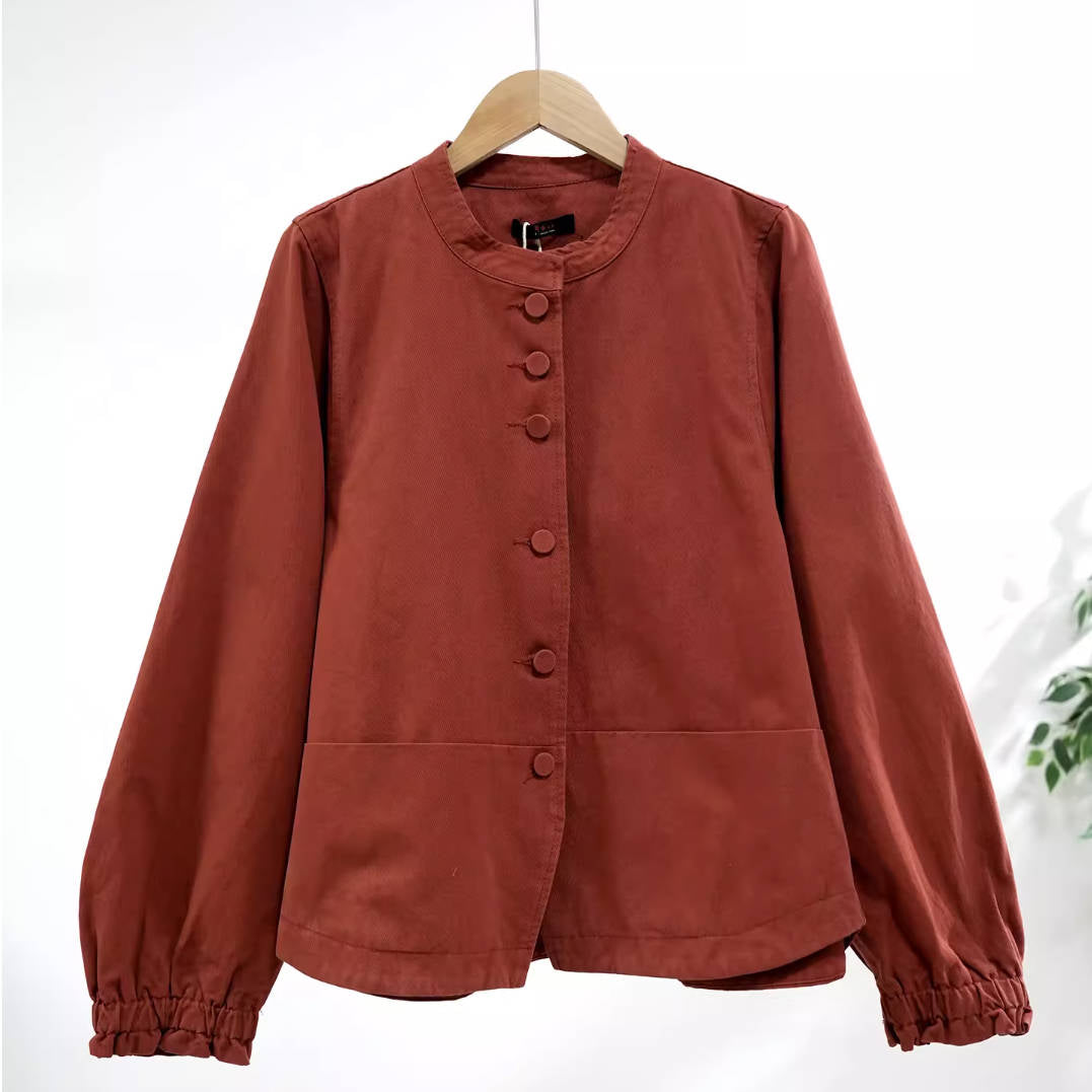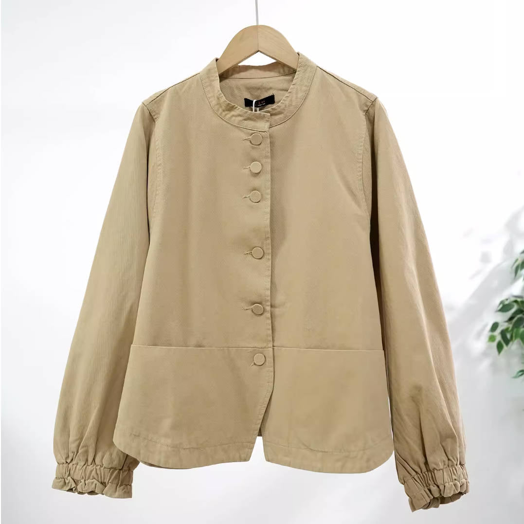 - Article : Veste de printemps en coton à col rond, couleur unie, à simple boutonnage