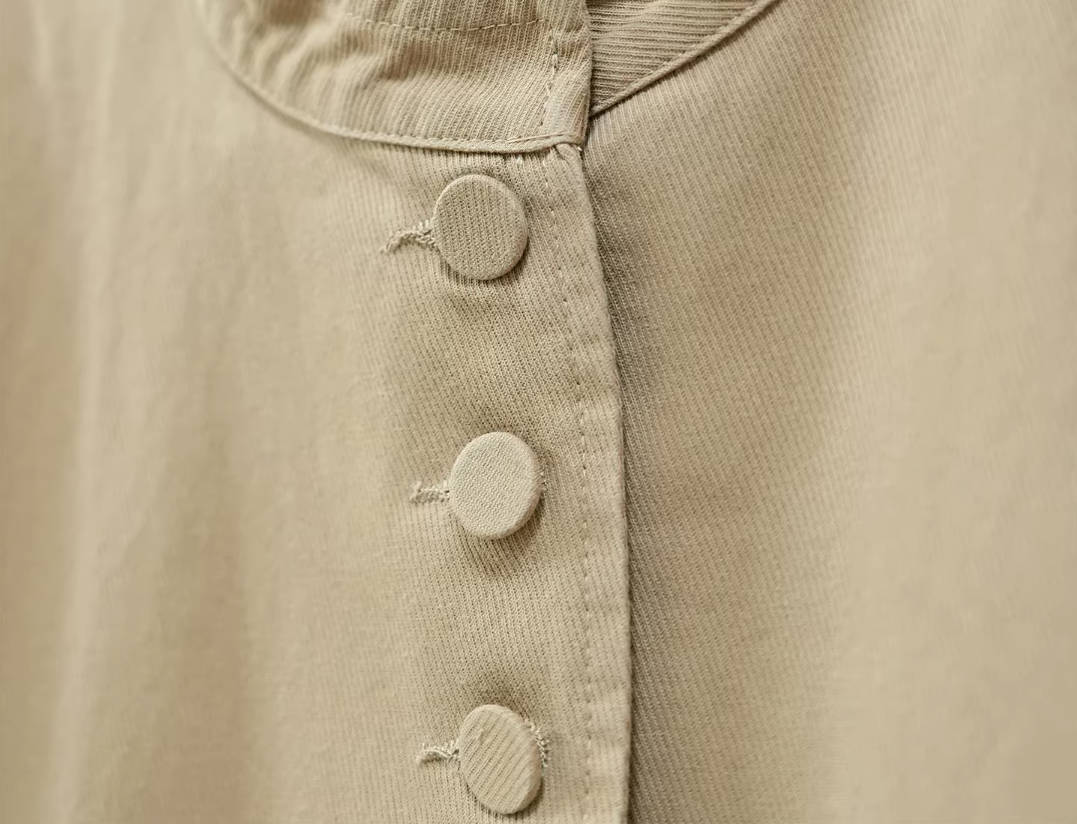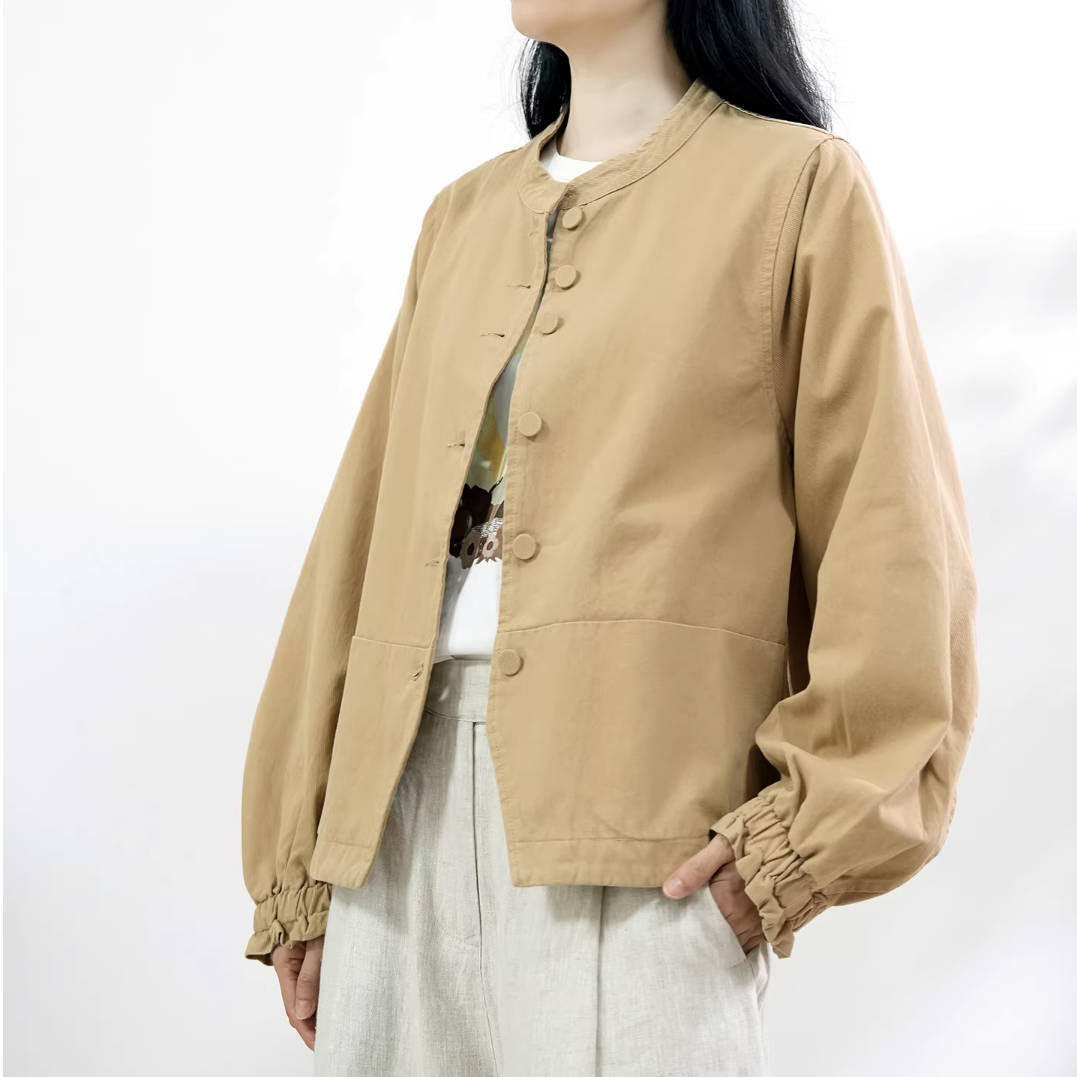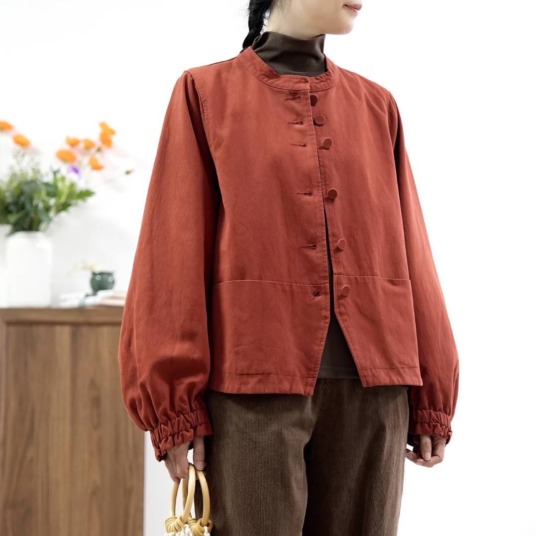 - Article : Veste de printemps en coton à col rond, couleur unie, à simple boutonnage