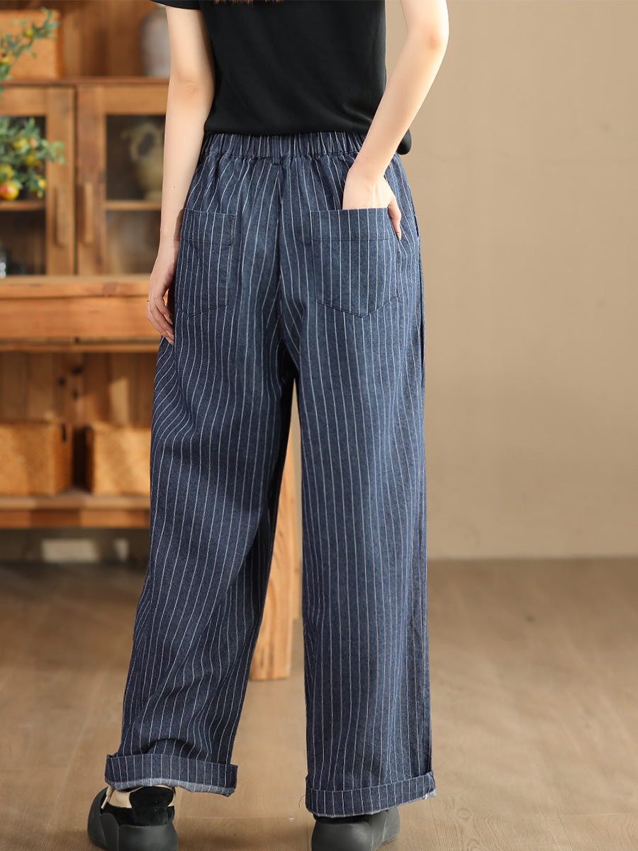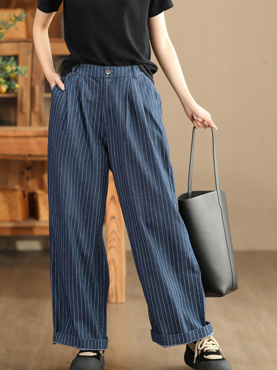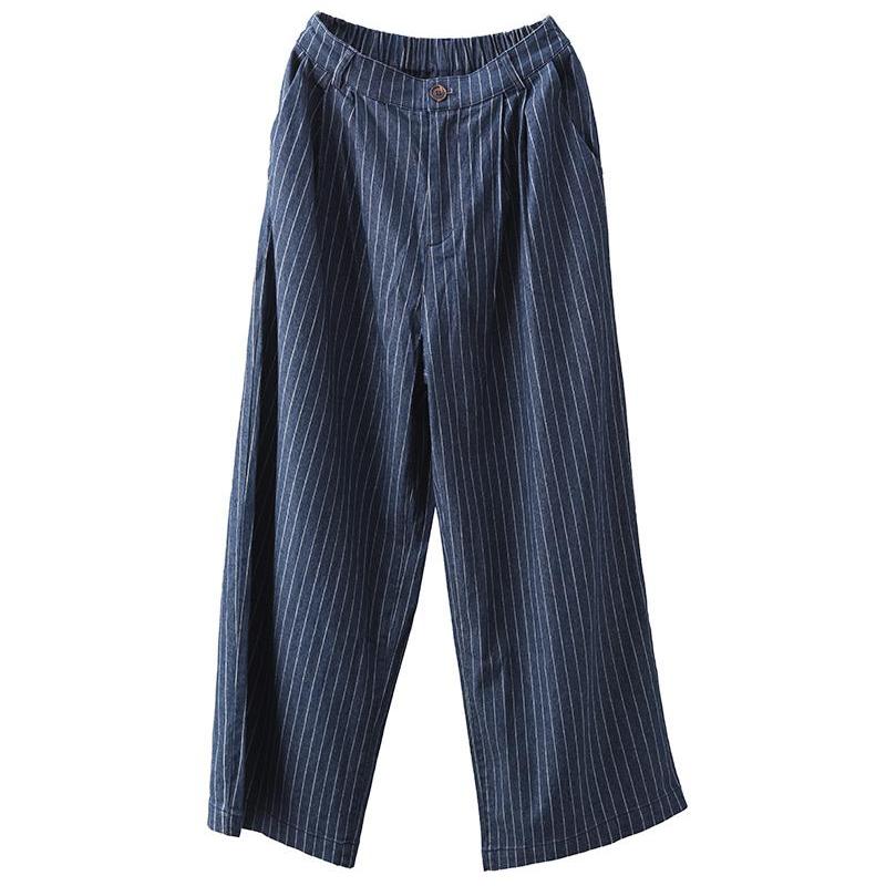 - Article : Babakud Pantalon large rayé en coton et lin pour femme, collection automne