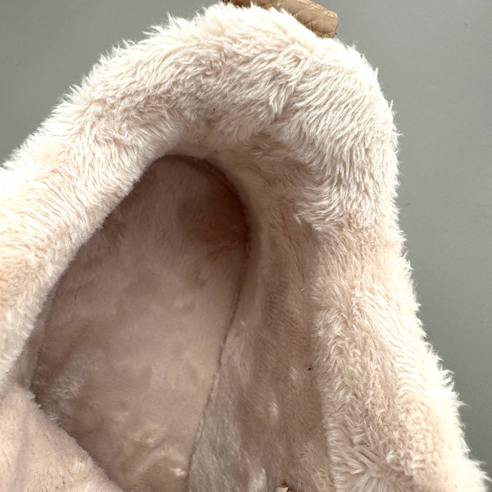 Bottines d'hiver en cuir chaud à semelle épaisse et lacets, bout large et peluche, style bottines à lanières.