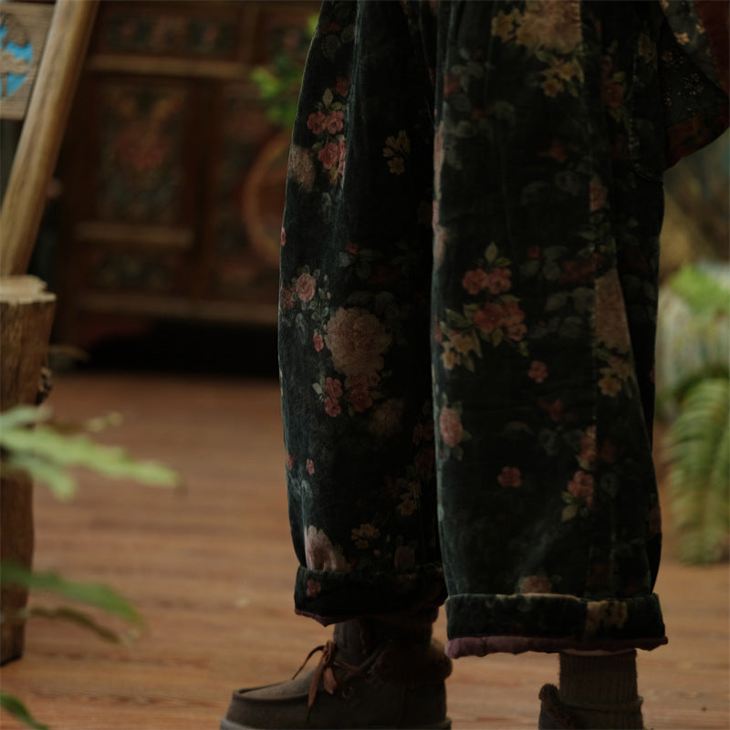 Pantalon décontracté matelassé en coton fleuri pour femme Babakud