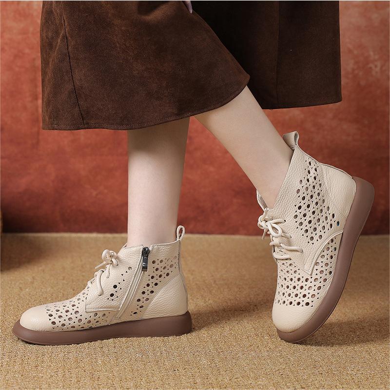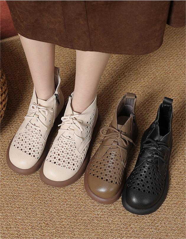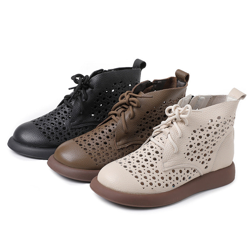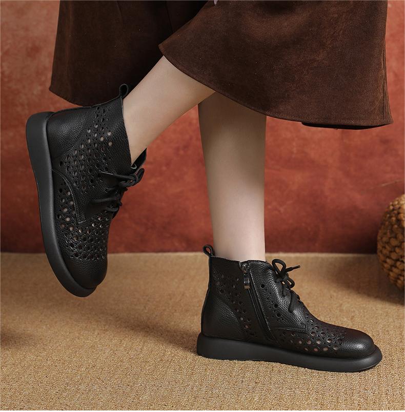 Bottines à lacets en cuir creux et semelles souples pour femmes
