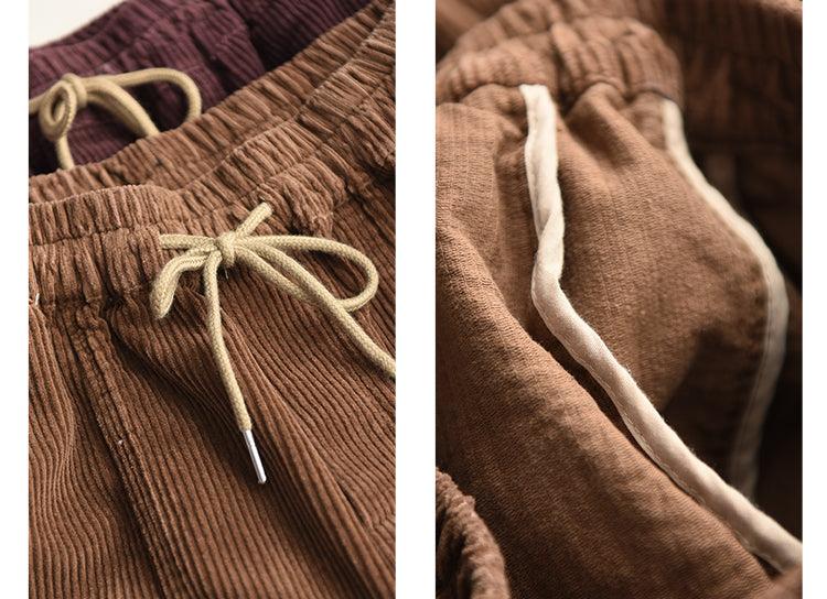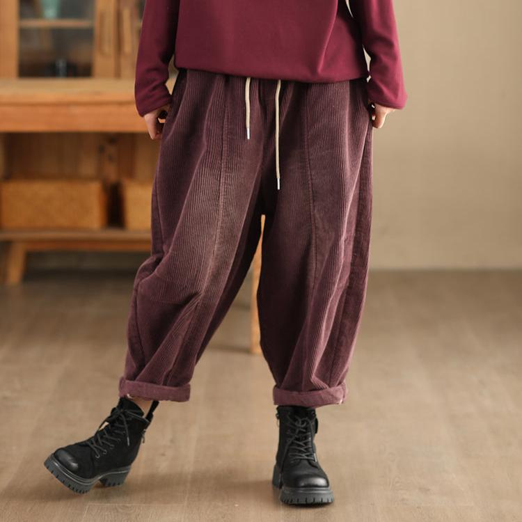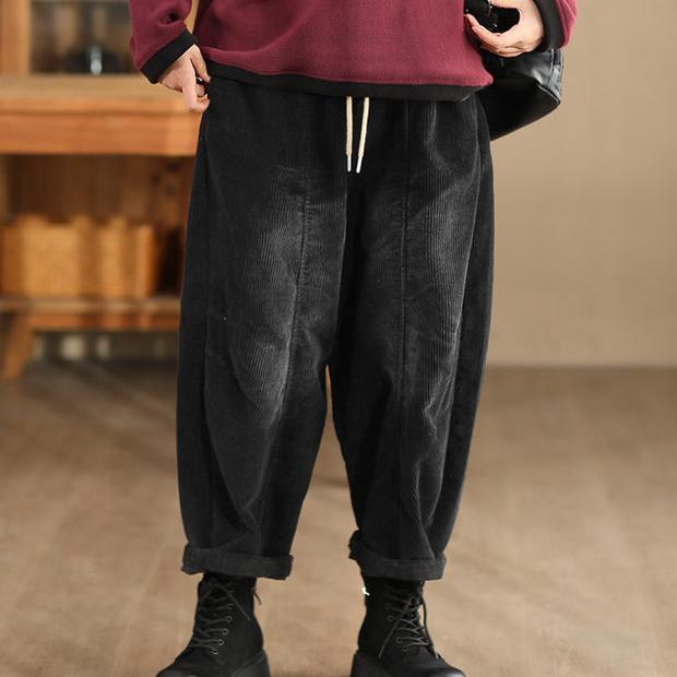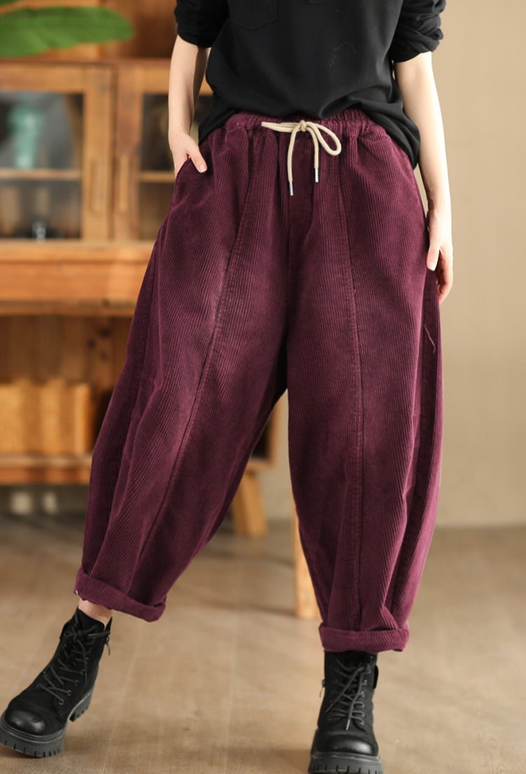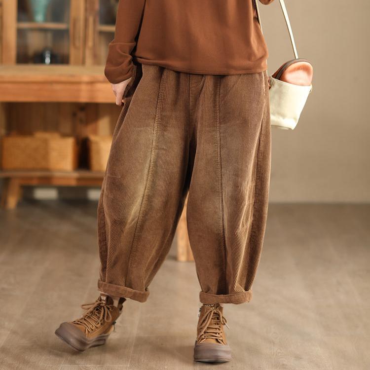 Pantalon décontracté en velours côtelé de coton vintage délavé pour femme Babakud