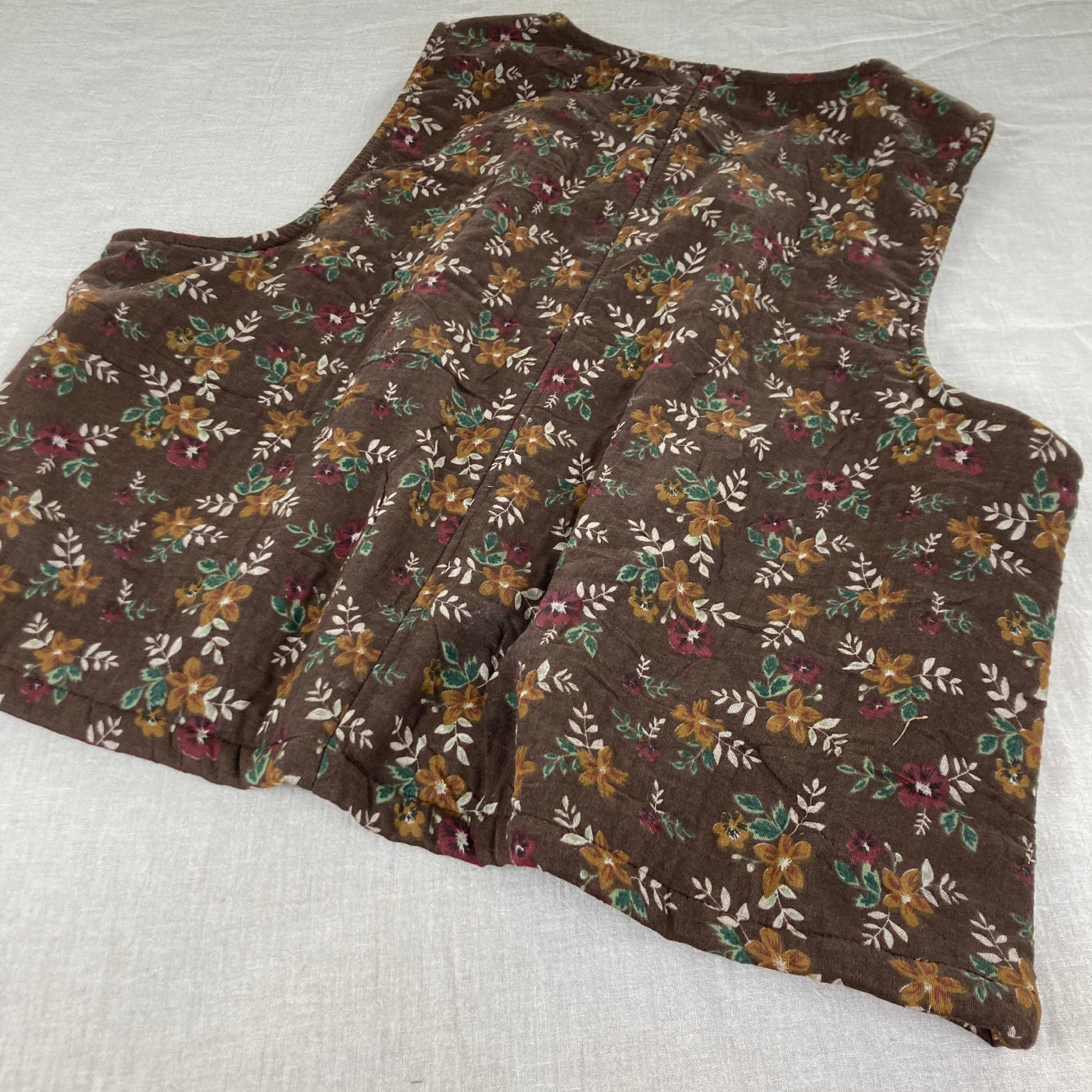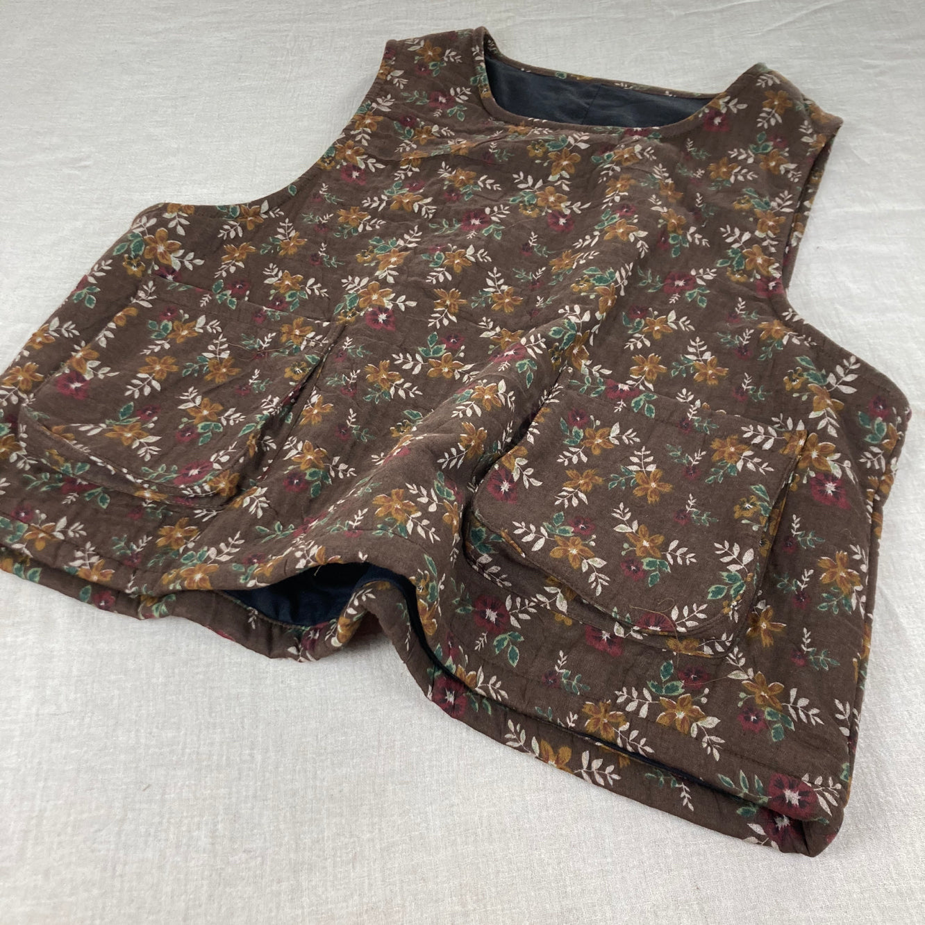 Gilet matelassé en coton et lin à imprimé floral vintage pour femme