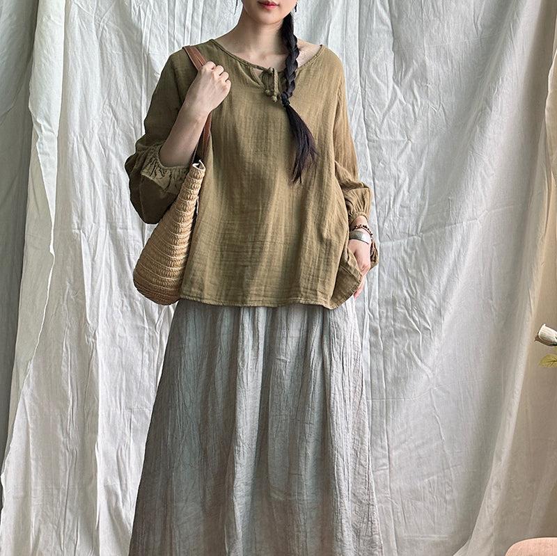 • Item: Babakud Women Artistic Round Neck Casual Loose Cotton Shirt