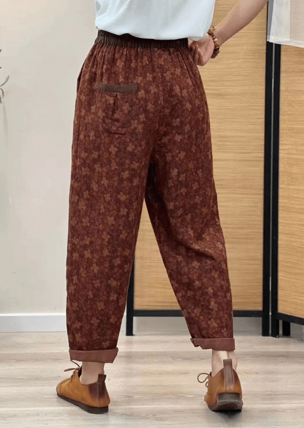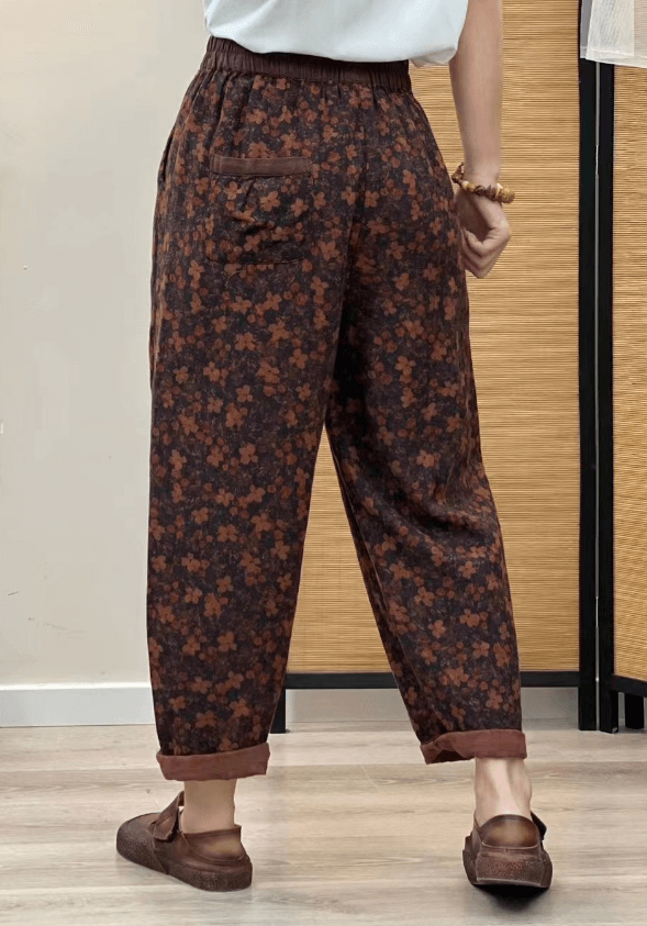 Babakud Women Autumn Vintage Floral Cotton Linen Harem Pants