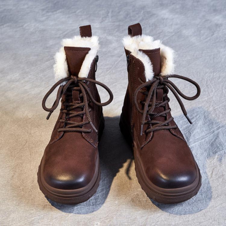 Babakud Women Winter Retro Fleece-Lined Leather Warm Casual Martin Boots