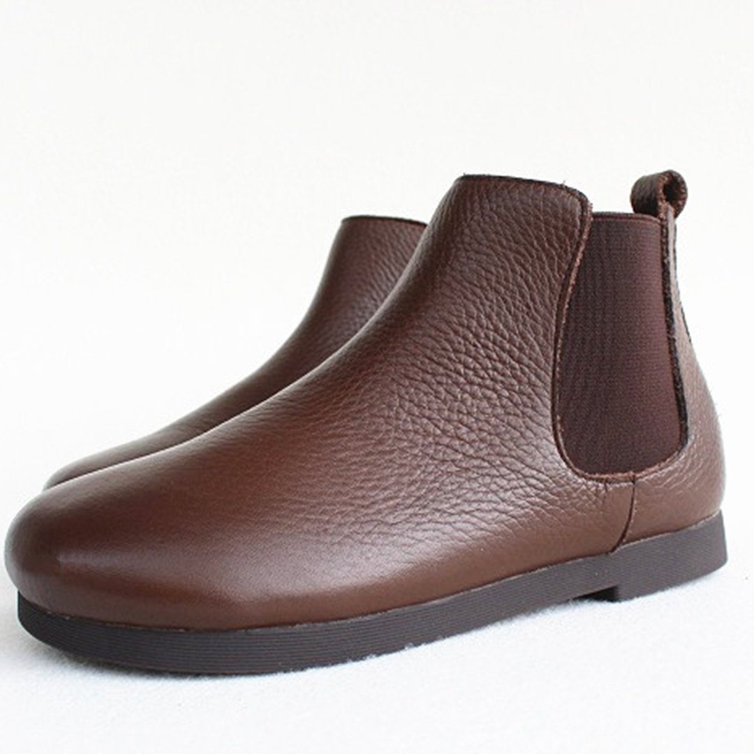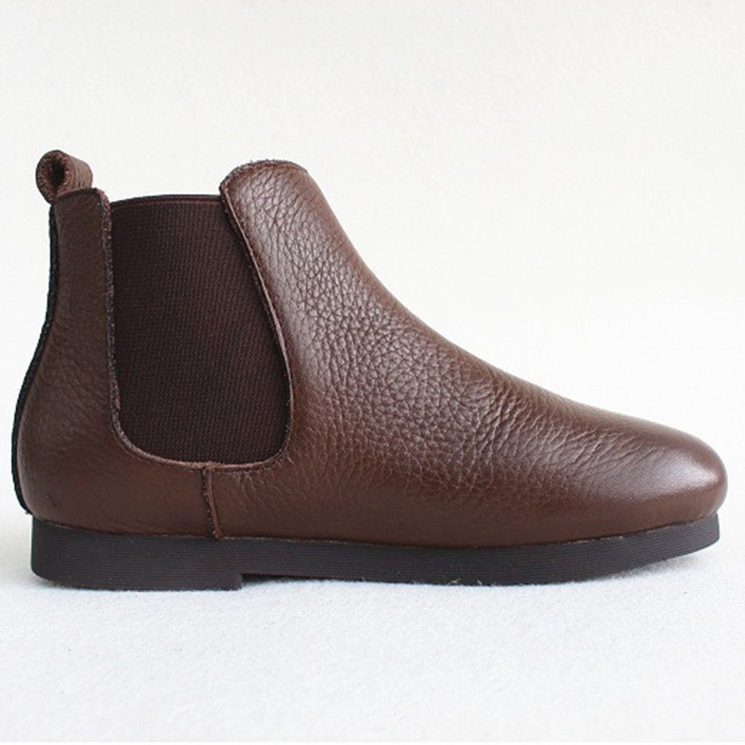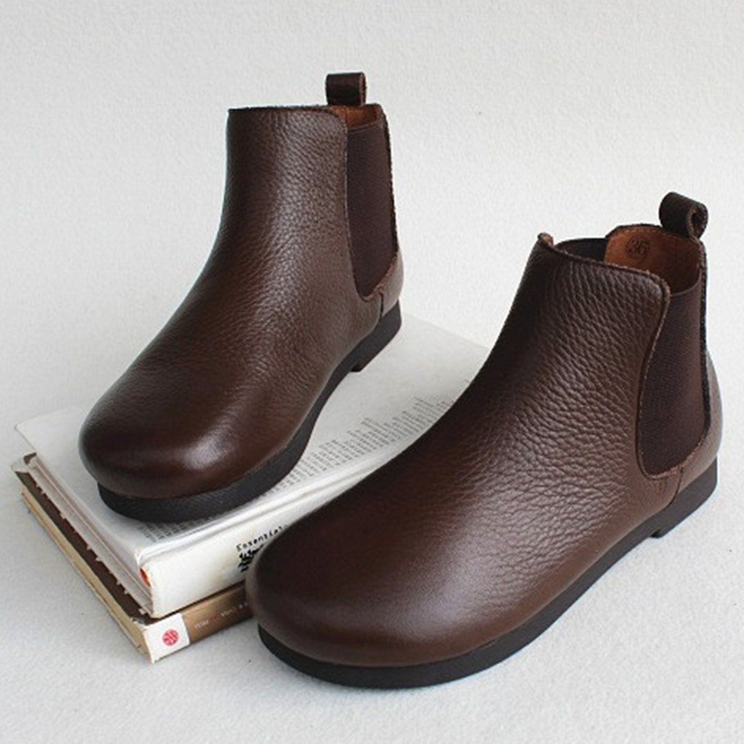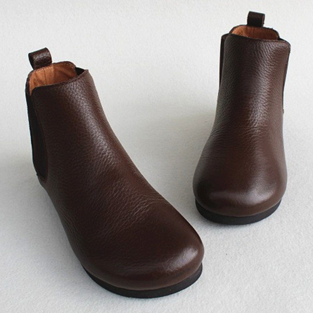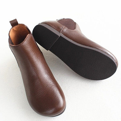 Babakud Women Retro Coffee Paneled Leather Ankle Boots