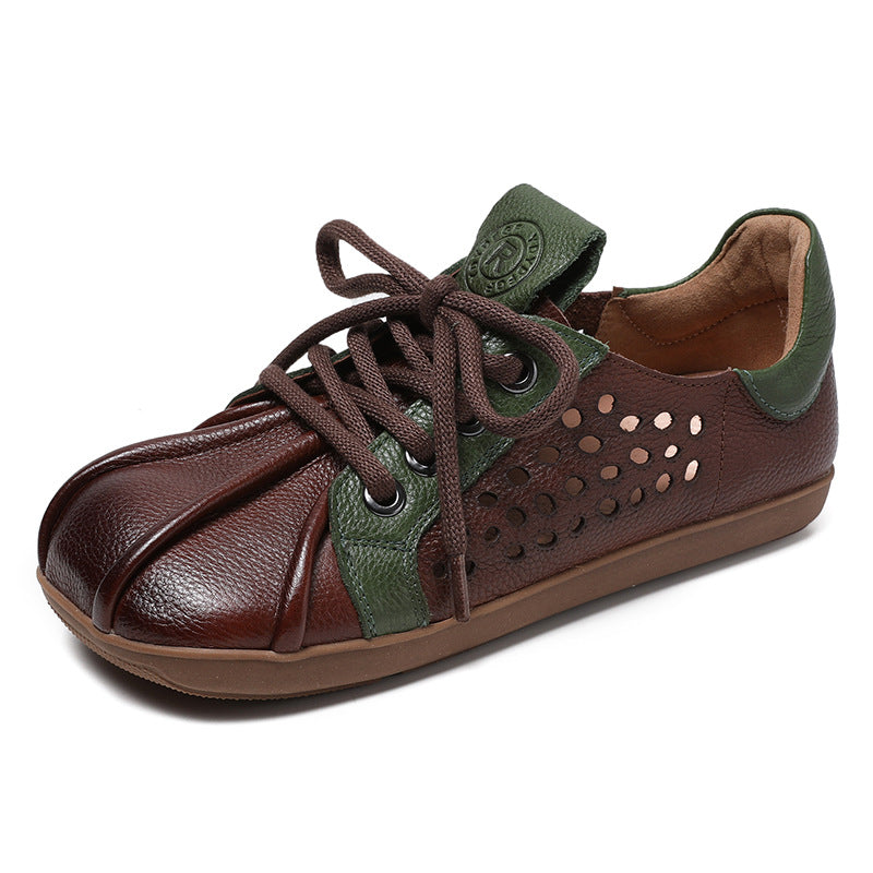 Spring Retro Hollow Soft Sole Color Block Leather Casual Shoes