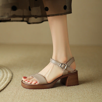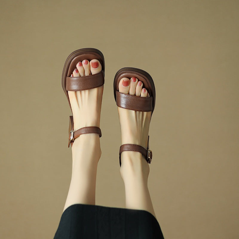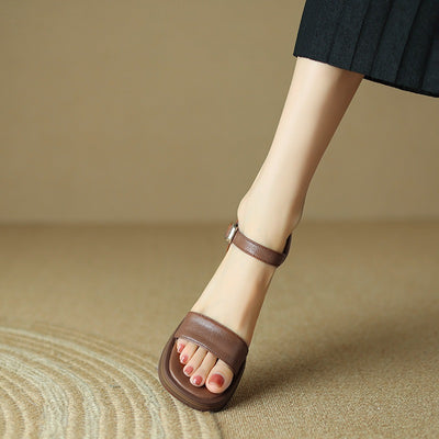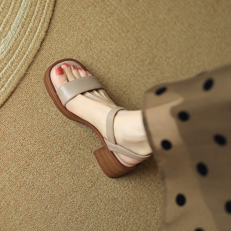 Summer Vintage Sheepskin Leather Chunky Open Toe Sandals