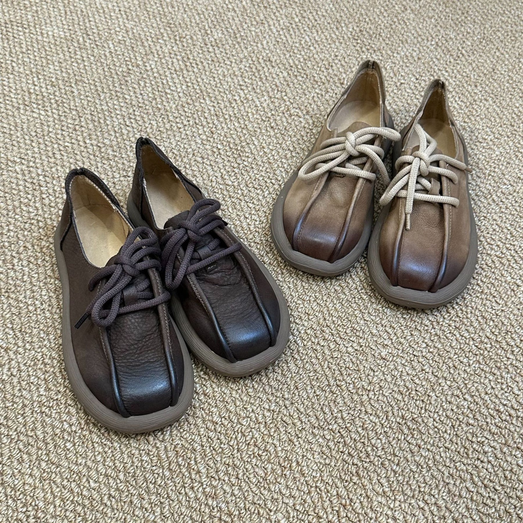 Women Autumn Retro Fashion Leather Lace-Up Flat Casual Shoes