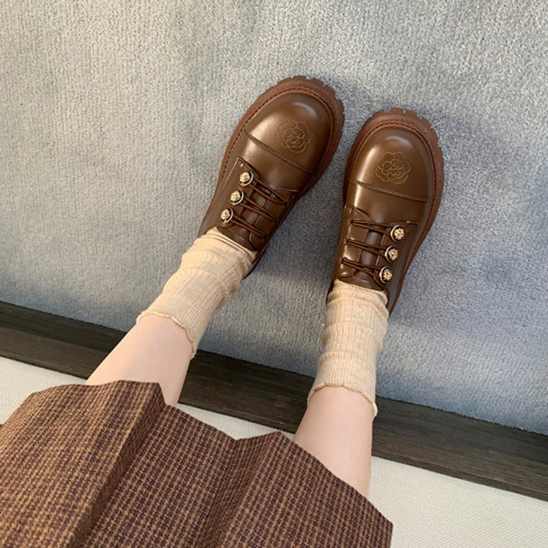 - Item Type: Women Elegant Button Accents Floral Embroidery Oxfords
