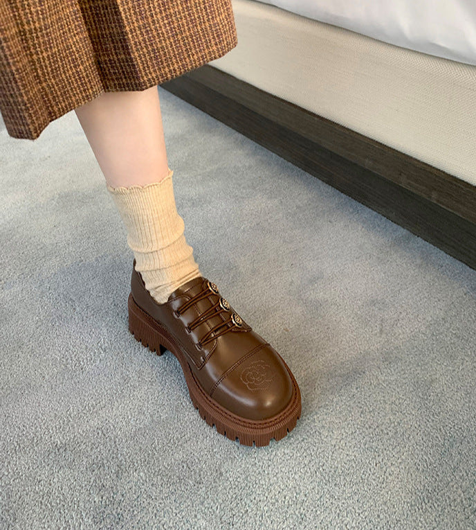 Women Elegant Button Accents Floral Embroidery Oxfords