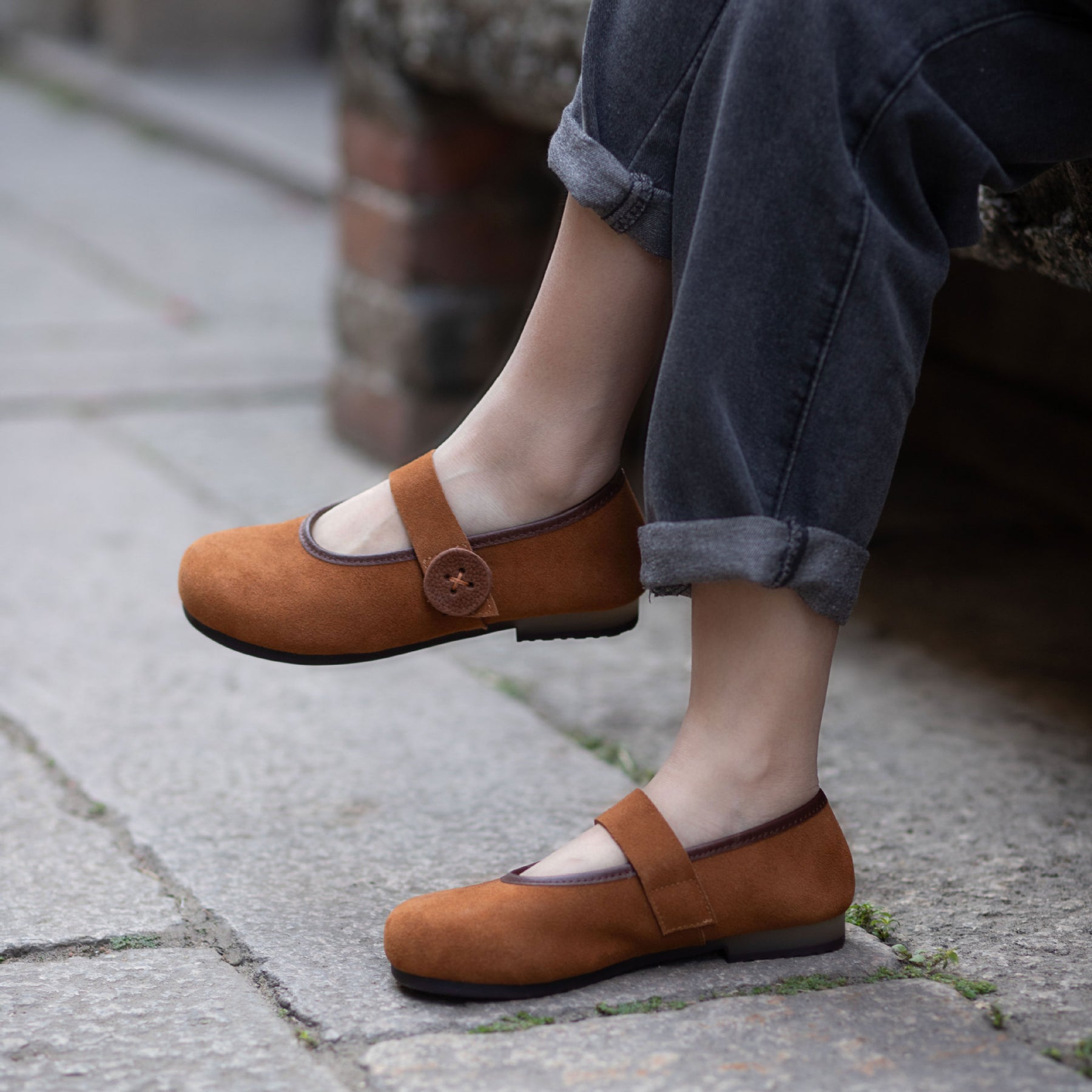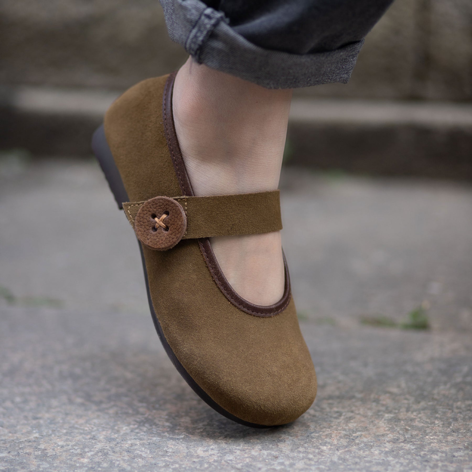Women’s Genuine Leather Mary Jane Flats With One-Strap Buckle
