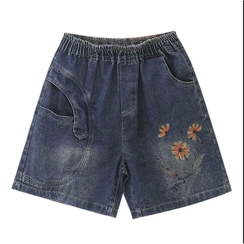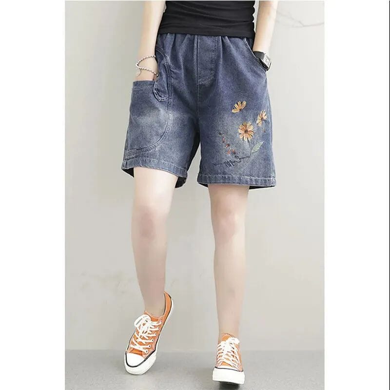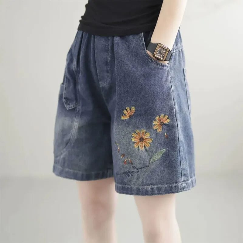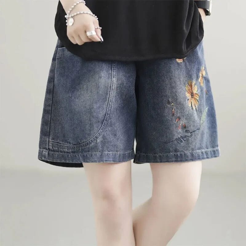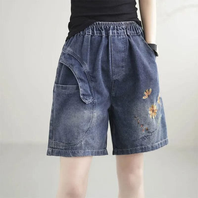 Women Summer Casual Embroidery Loose Denim Shorts