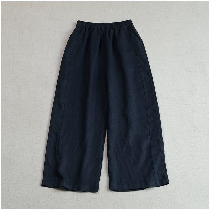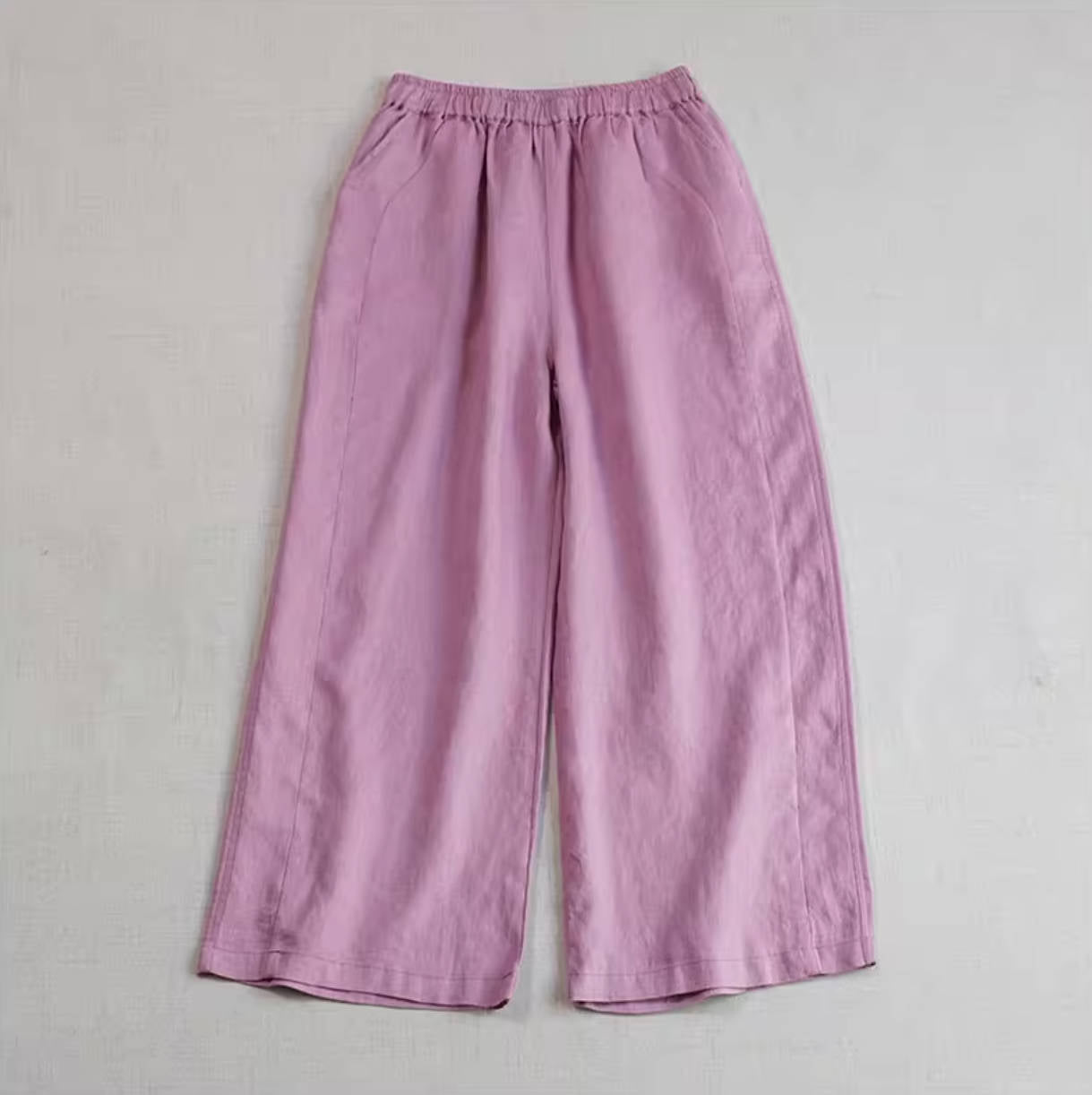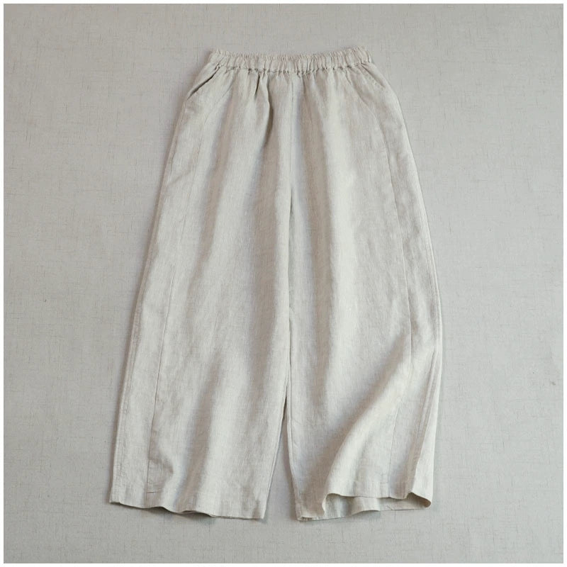 - Item: Women Summer Retro Linen Solid Color Loose Cropped Pants