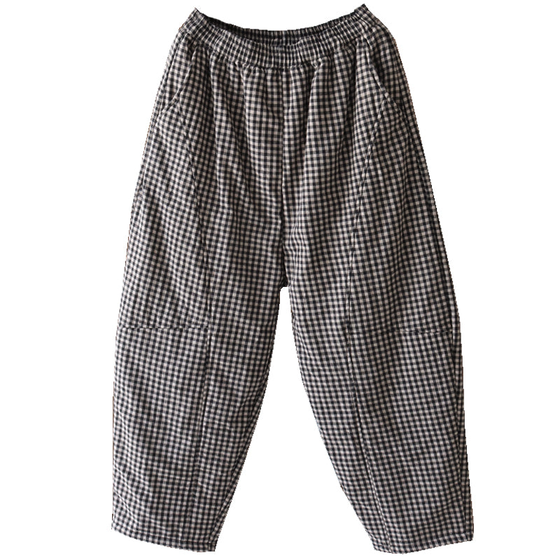 Women Winter Vintage Quilted Plaid Warm Cotton Harem Pants